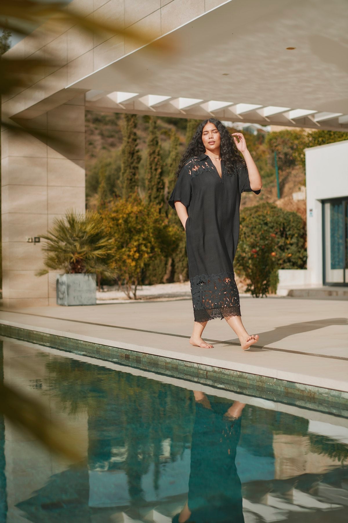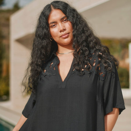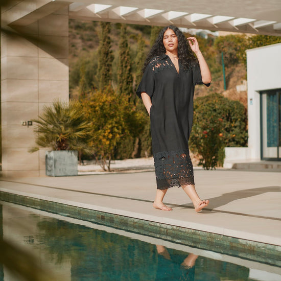 Elegant sort kjole med smukke blondedetaljer