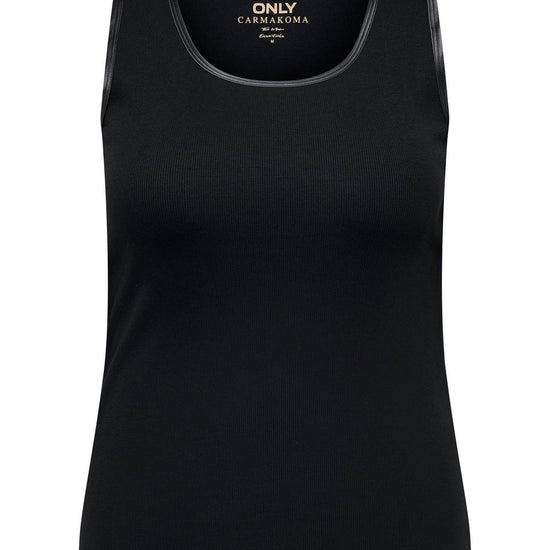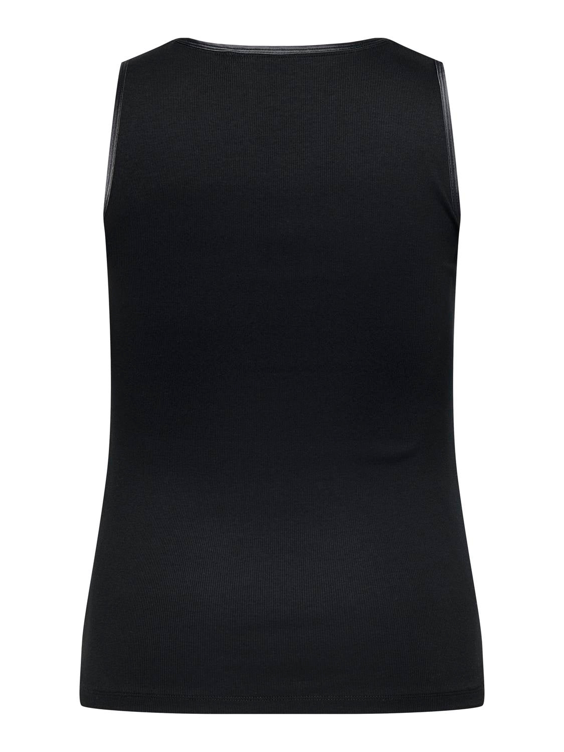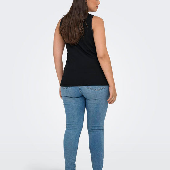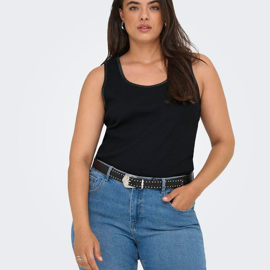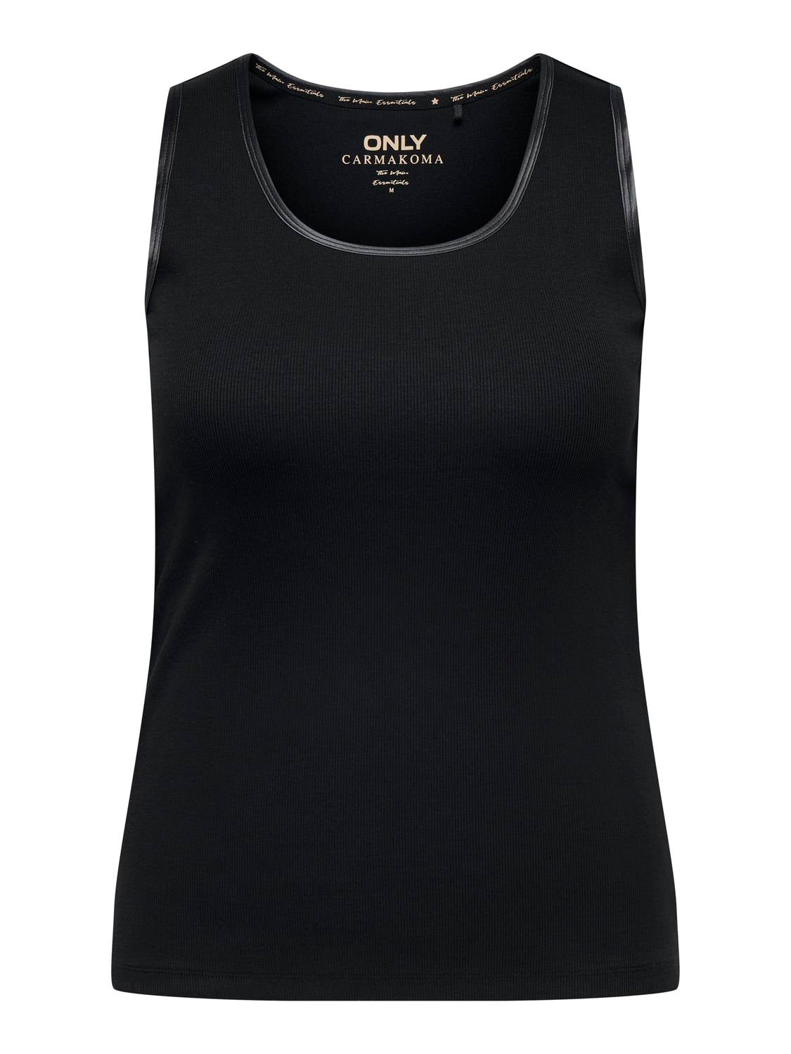 ONLY CARMAKOMA præsenterer denne klassiske sorte top, der er det perfekte valg til din garderobe. Med sin tidløse sorte farve og enkle design er den ideel til enhver anledning. Toppen har en rund halsudskæring og brede skulderstropper, som sikrer en behagelig pasform og stilfuld fremtoning.