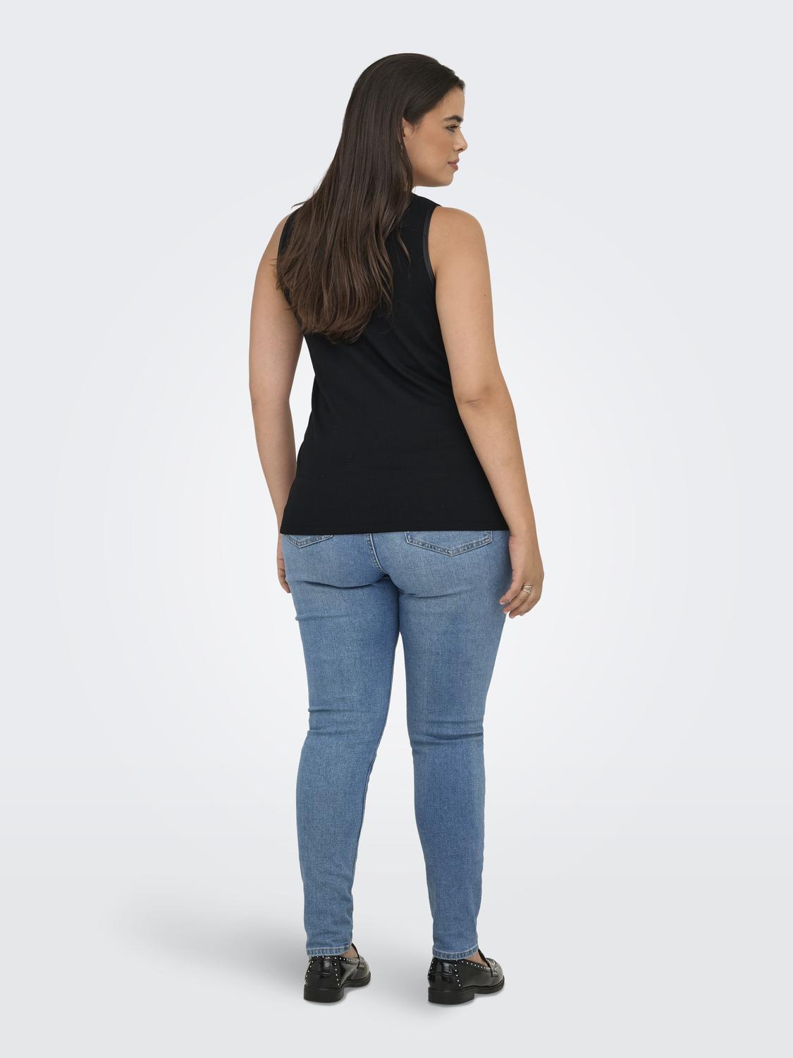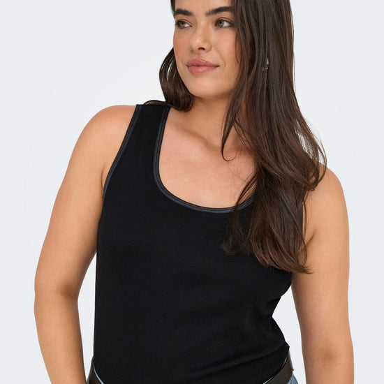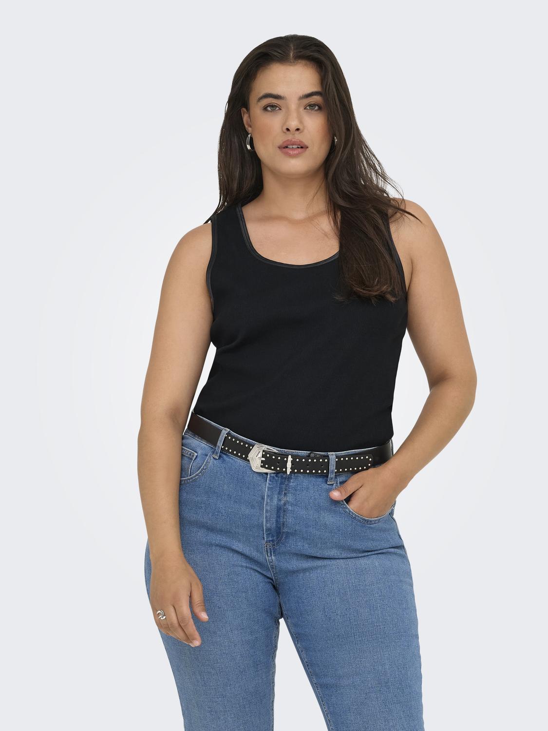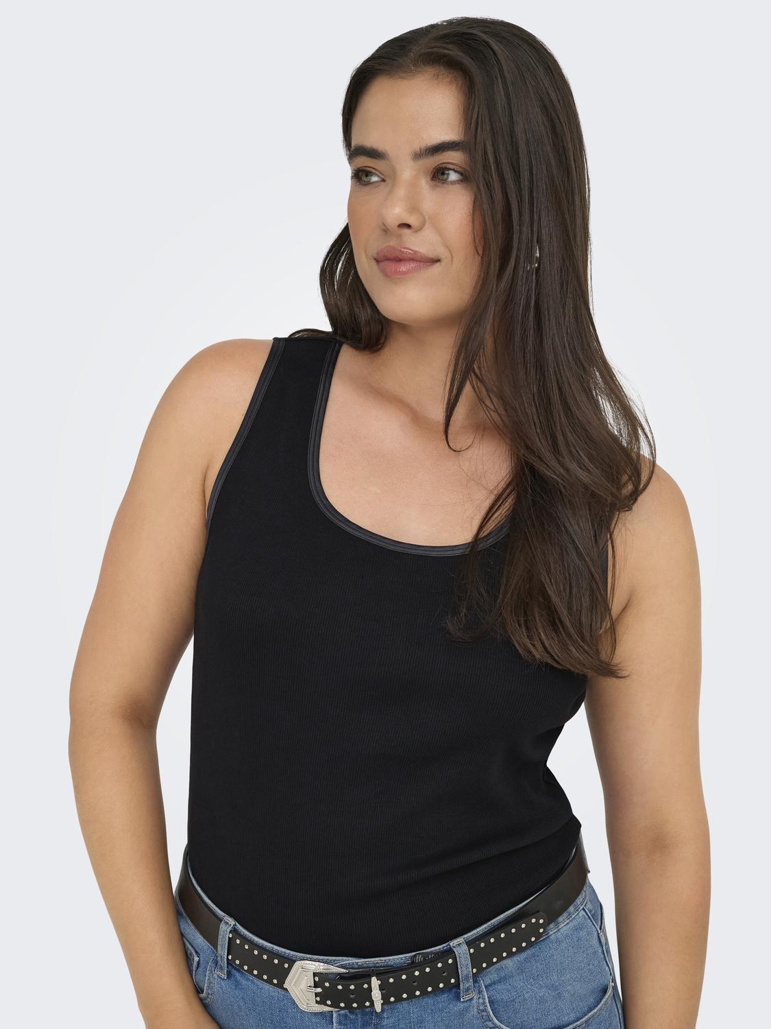 ONLY CARMAKOMA præsenterer denne klassiske sorte top, der er det perfekte valg til din garderobe. Med sin tidløse sorte farve og enkle design er den ideel til enhver anledning. Toppen har en rund halsudskæring og brede skulderstropper, som sikrer en behagelig pasform og stilfuld fremtoning.