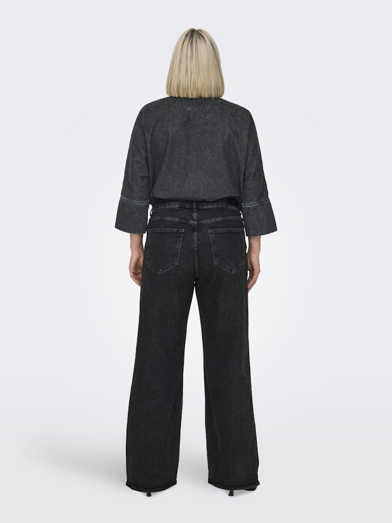 Det rummelige snit gør disse bukser til store kvinder ideelle til både hverdagsbrug og festlige begivenheder. Du kan style dem med en denimskjorte for et gennemført look eller en fin top for et mere feminint udtryk. Den vaskede sorte nuance gør det nemt at sammensætte outfittet med resten af din garderobe, uanset om du bruger stiletter eller sneakers.
