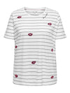 T-shirten er hvid med tynde striber og læber formet af pailetter, der giver et moderne og stilfuldt udtryk. Dette gør den ideel til både afslappet hverdagsbrug og til at pifte dit outfit op til særlige lejligheder.