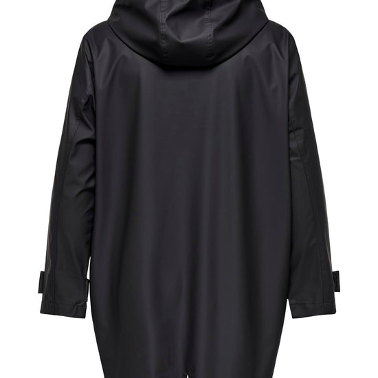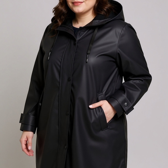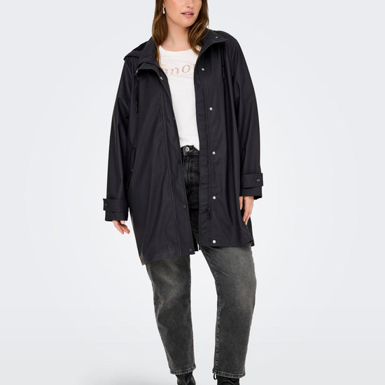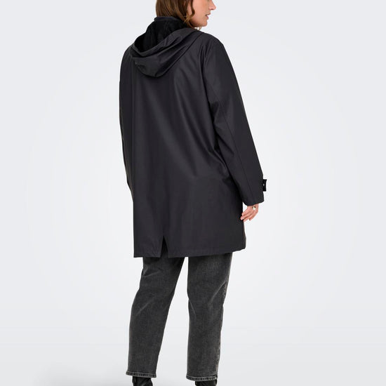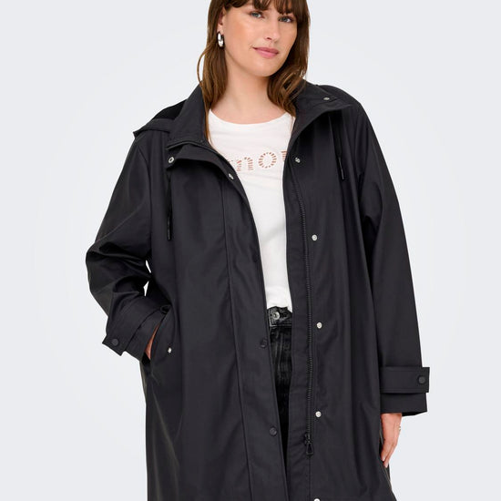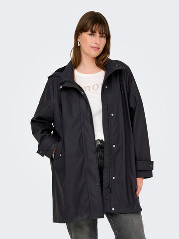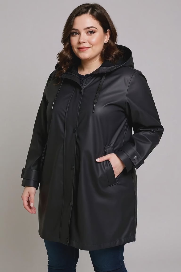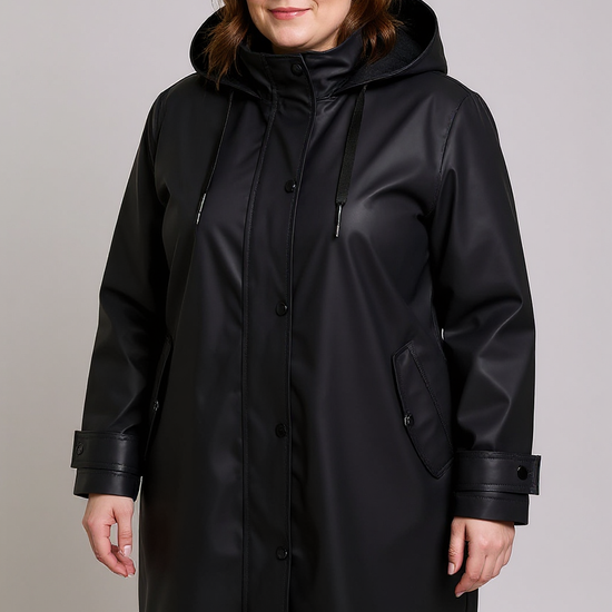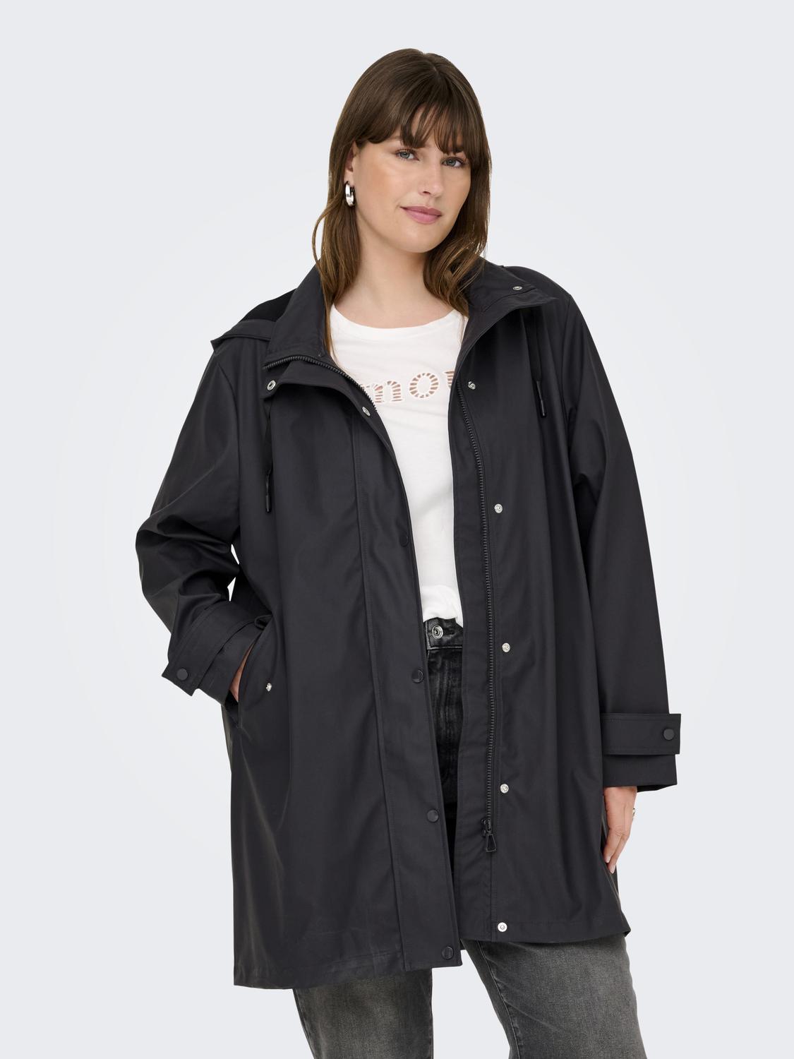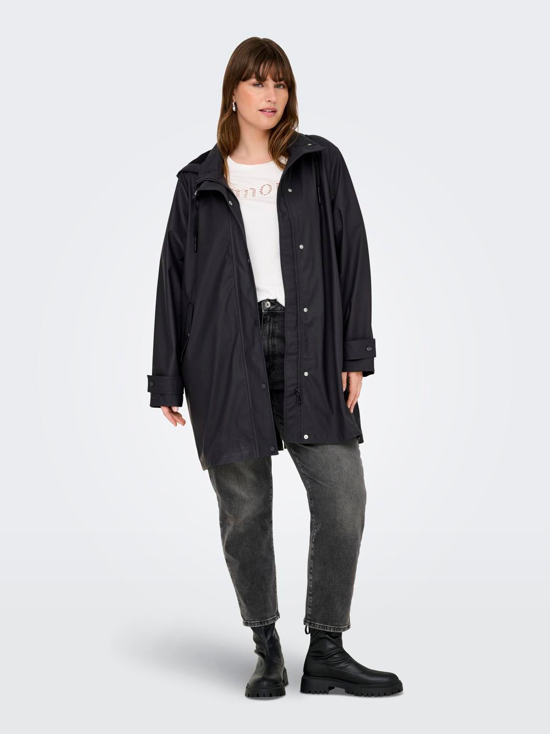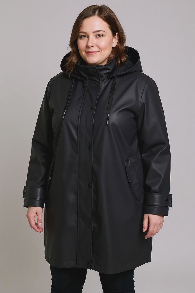 Carlili er en vandafvisende regnfrakke med hætte og justerbare knapper ved ærmerne. Den er lavet af 100% polyester med en polyurethan-belægning.