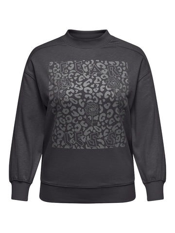 Blusen har et unikt grafisk print på forsiden, der består af et leopardmønster i tone-i-tone kontrast samt rosemotiver. Designet er suppleret af ordet "FEARLESS" i store bogstaver, hvilket giver et dristigt og selvsikkert udtryk. Pasformen er afslappet med en rund halsudskæring og lange ærmer, der afsluttes med ribstrikkede manchetter for en god pasform.