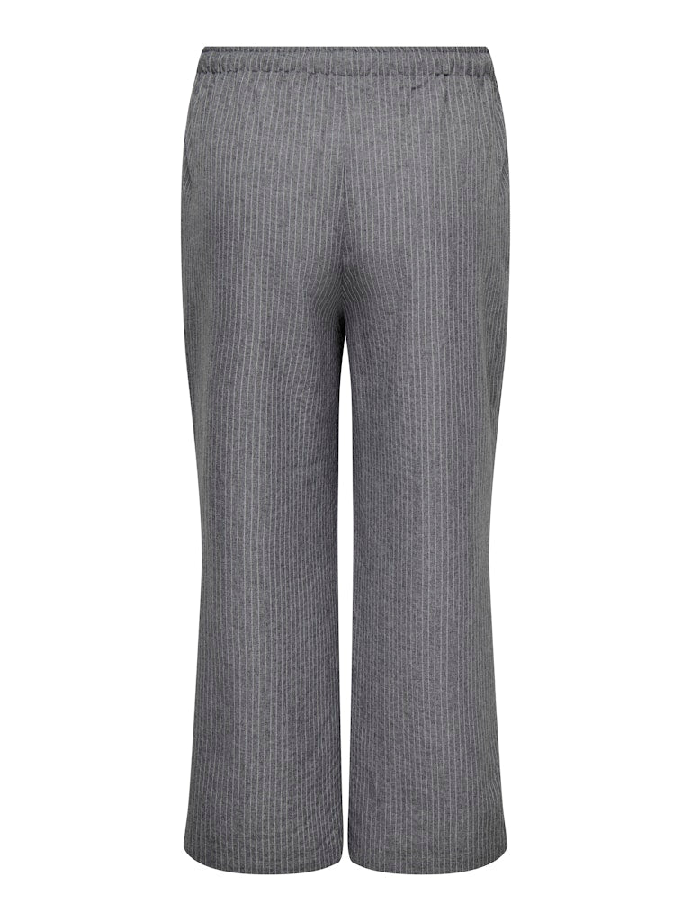 Disse elegante bukser fra ONLY CARMAKOMA kombinerer et klassisk nålestribet look med maksimal komfort. Den lige pasform og elastiske talje med snøre sikrer, at bukserne sidder behageligt hele dagen – uanset om du bruger dem til hverdag eller festlige lejligheder. Den medium grå melange farve med hvide pin striber giver et stilrent udtryk, der aldrig går af mode.