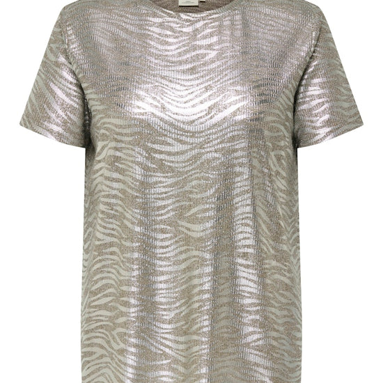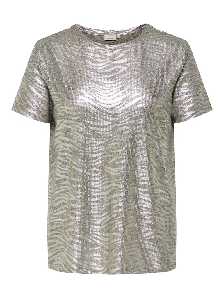Giv dit outfit et eksklusivt løft med denne moderne bluse fra ONLY CARMAKOMA. Blusen har en rund hals og korte ærmer, hvilket giver et afslappet og behageligt fit, der passer perfekt til både hverdag og festlige lejligheder. Det unikke all-over print kombineret med en subtil, metallisk finish tilfører elegance og personlighed til dit look.