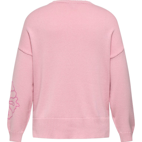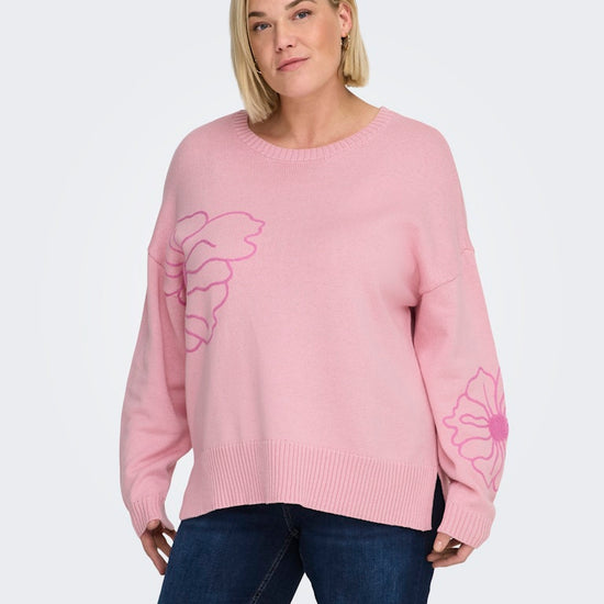 CarPetra - Strikbluse med Broderet Blomst
