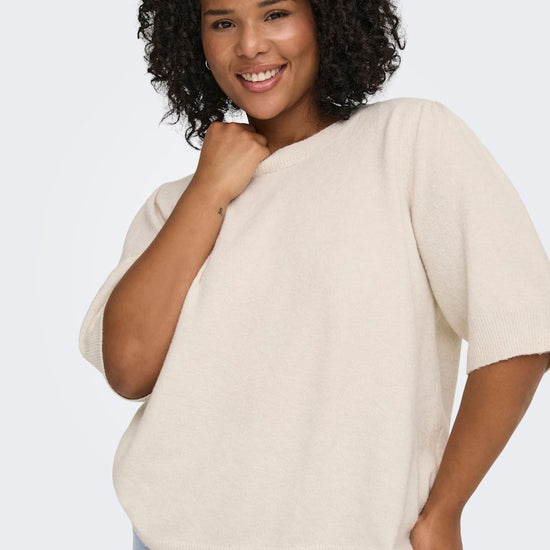 Denne strikkede bluse fra Only Carmakoma er en ideel tilføjelse til garderoben, hvis du søger både komfort og stil. Modellen har en flot melange-effekt i materialet, hvilket giver et levende og blødt udtryk, der passer perfekt til en kurvet figur. Med sin regular fit pasform sikrer blusen en behagelig bevægelsesfrihed, hvilket gør den skøn at have på dagen lang.