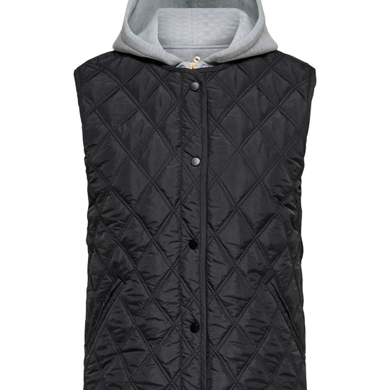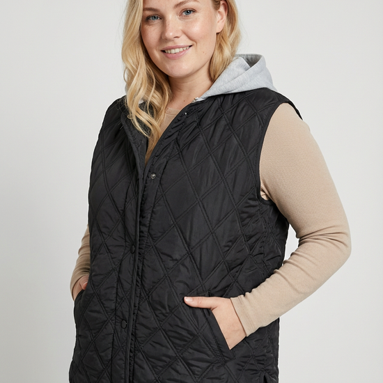 Smart sort quiltet vest med hætte