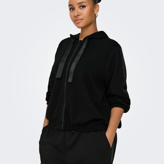 Opgrader din garderobe med denne smarte hoodie fra ONLY CARMAKOMA. Denne hoodie er designet specielt til kurvede kvinder i størrelserne 42-54 og fremhæver din naturlige skønhed med sin flatterende pasform. Med sit afslappede, men sofistikerede design kan du både slappe af derhjemme eller skabe et cool look til hverdagens aktiviteter. Blusen har lurex bånd langs ærmerne.