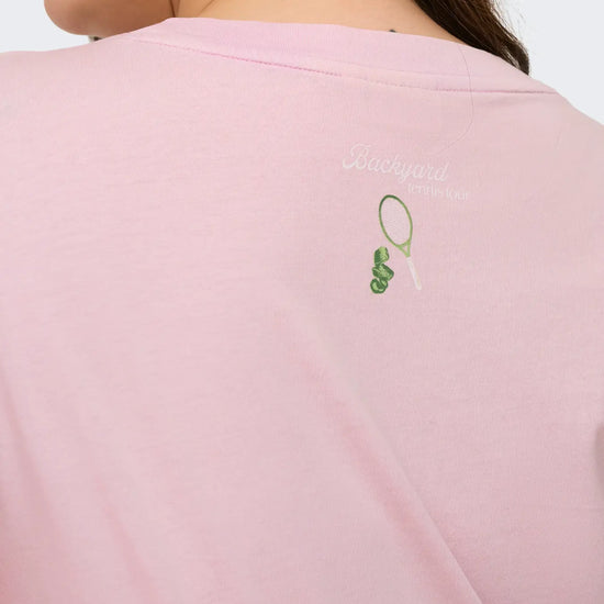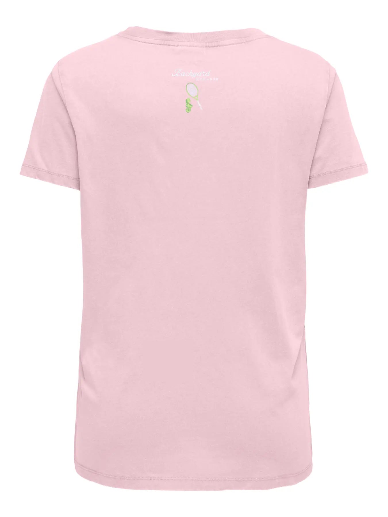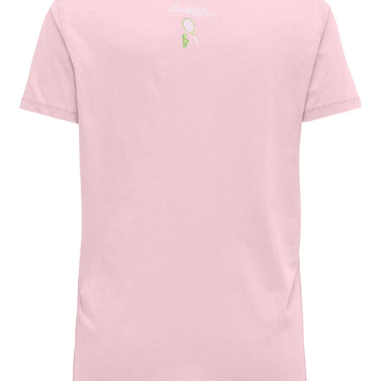 - Flot lyserød bundfarve med et farverigt tennisprint foran