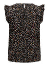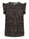 Blomstret top med korte ærmer og flæse og rund halsudskæring med smock