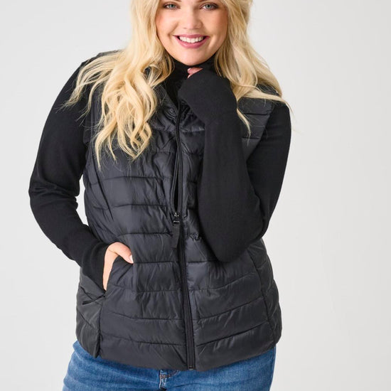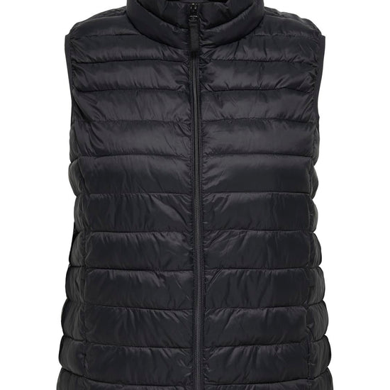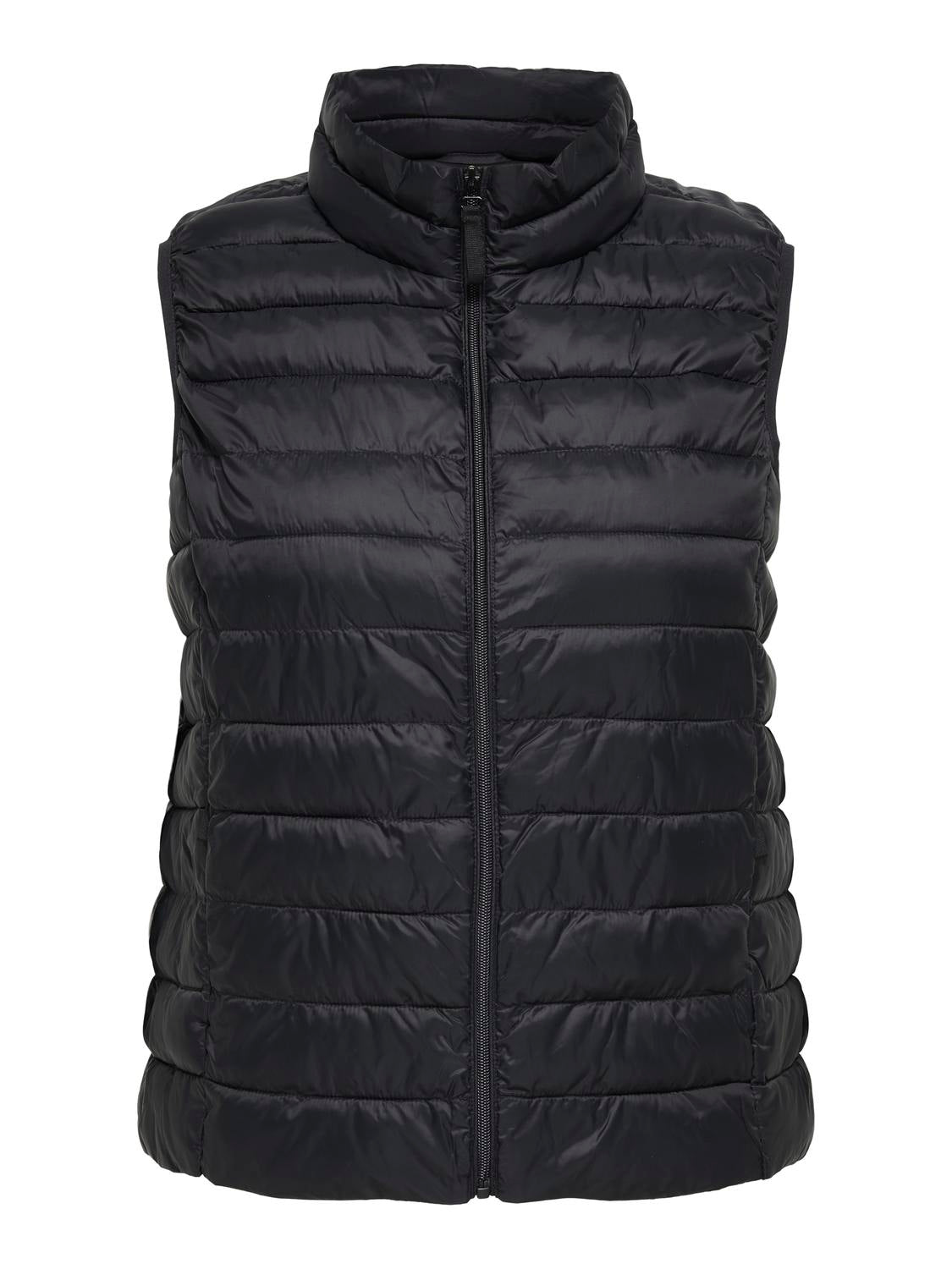 Quiltet vest med høj hals og lynlåslukning, designet til kvinder med kurver. Vesten er lavet i 100% nylon og har snøre i taljen for justerbar pasform. Perfekt til overgangsperioder og til at fuldende ethvert outfit med et casual look.