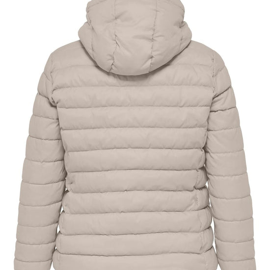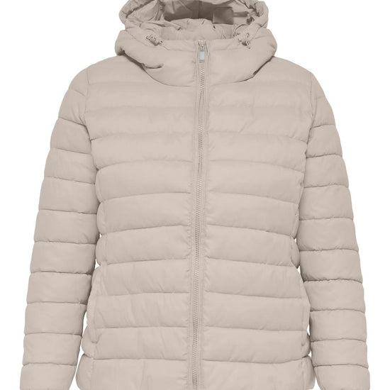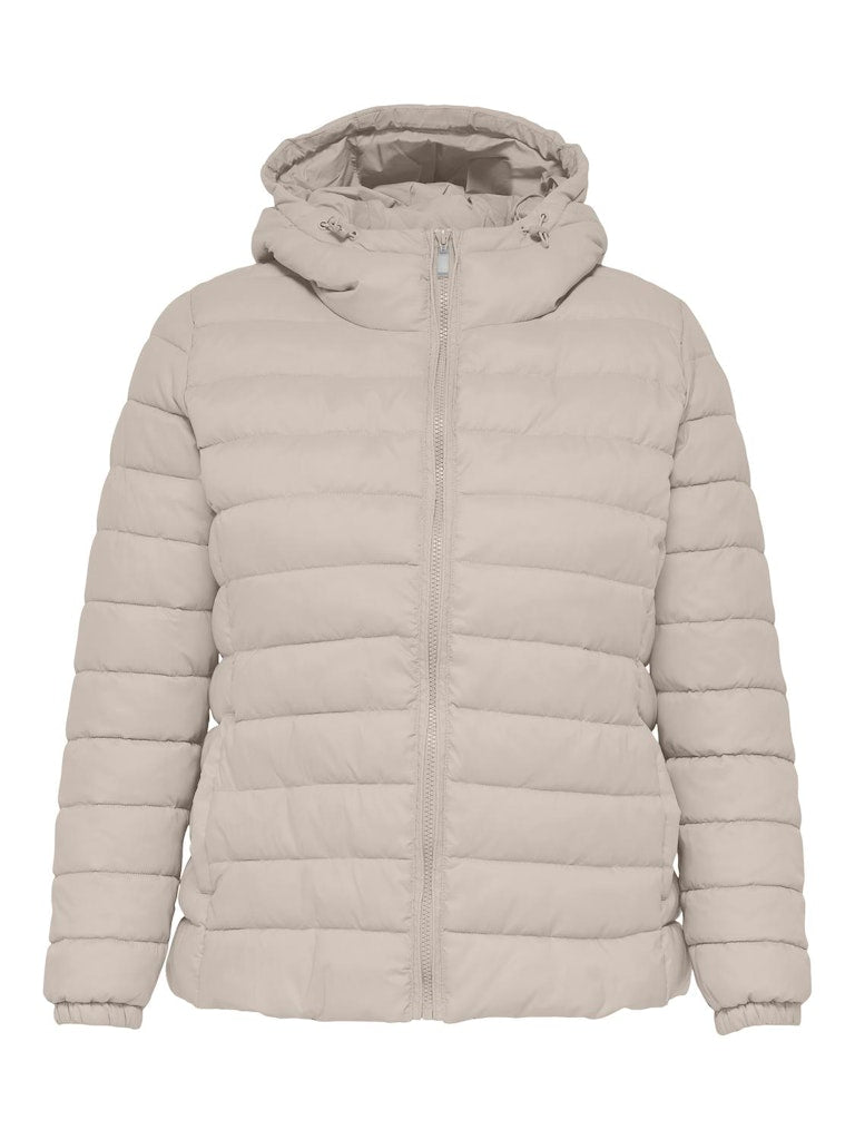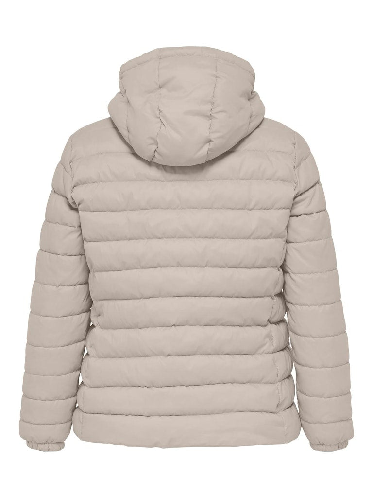 Quiltet jakke med hætte og snøre, lynlås og lommer