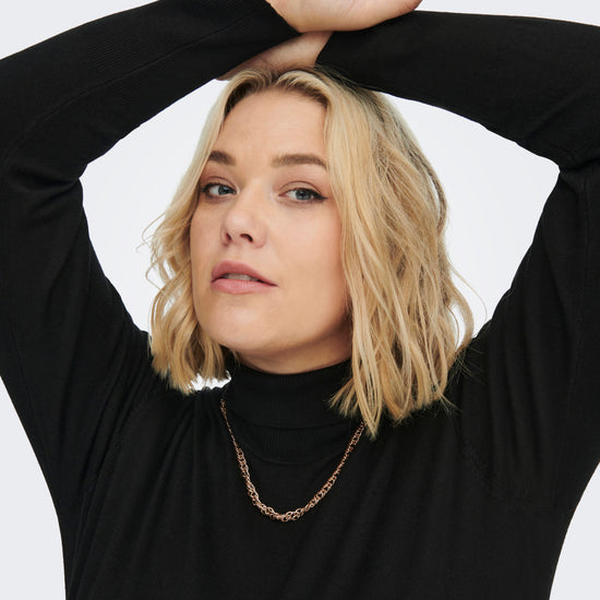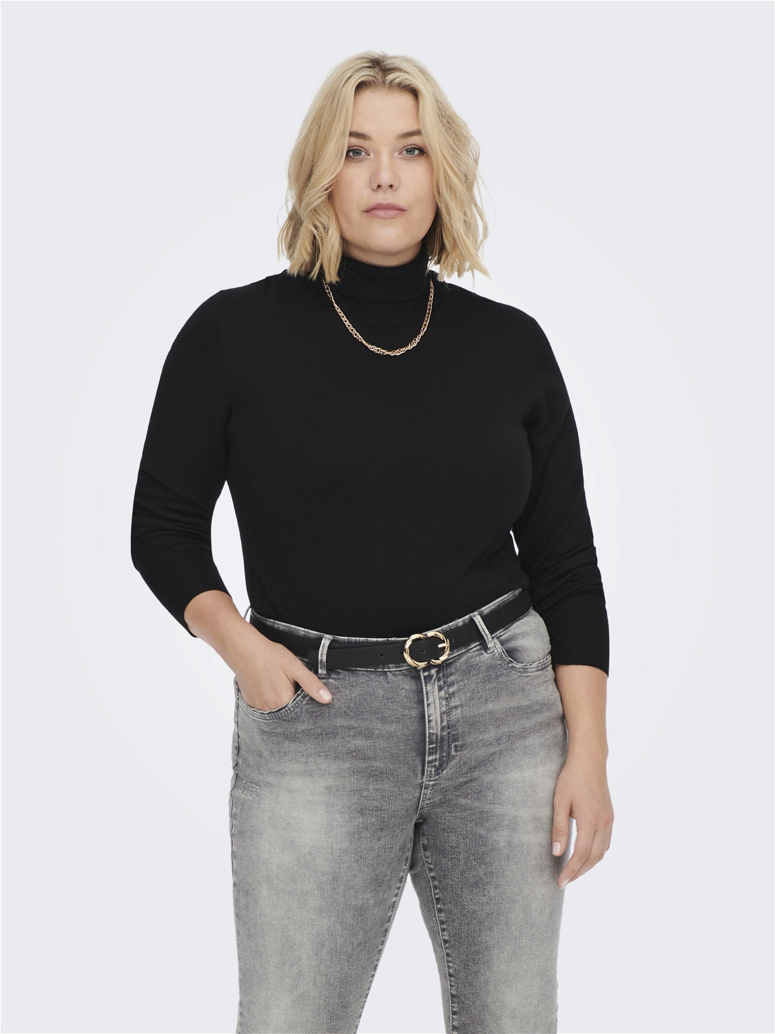 Basis strik pullover med turtleneck og lange ærmer. God at have under en strik og blazer.