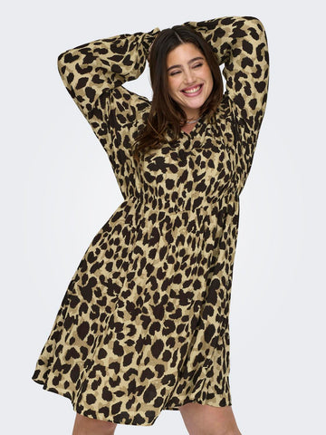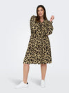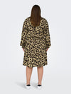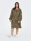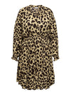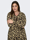 Denne ONLY CARMAKOMA midi kjole er indbegrebet af feminin elegance og komfort. Med sit regulære fit og smukke V-hals design, er denne kjole perfekt i enhver garderobe. Kjolen er fremstillet i 100% ekstra blød viskose, som sikrer en behagelig følelse mod huden hele dagen. Den elastiske talje fremhæver din figur, mens det leopardprintet stof, altid er et hit.