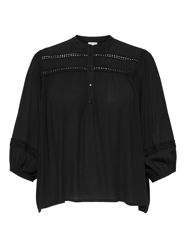 Få det bedste fra både komfort og stil med denne smukke bluse fra Only Carmakoma. Blusen er fremstillet i blød crepe viskose, som giver en karakteristisk, let krøllet overflade og en behagelig stræk. De 3/4-lange ballon ærmer med elastiske manchetter tilfører et feminint og luftigt udtryk, mens den runde halsudskæring og regular fit sikrer en flatterende pasform til enhver anledning.