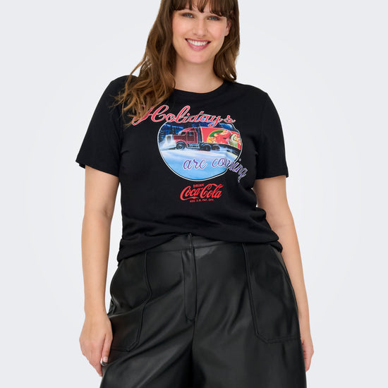 Festlig T-shirt fra ONLY CARMAKOMA med Coca-Cola juleprint