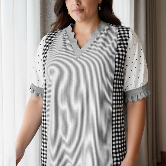 - Kombination af forskellige mønstre: striber, gingham og polkaprikker.