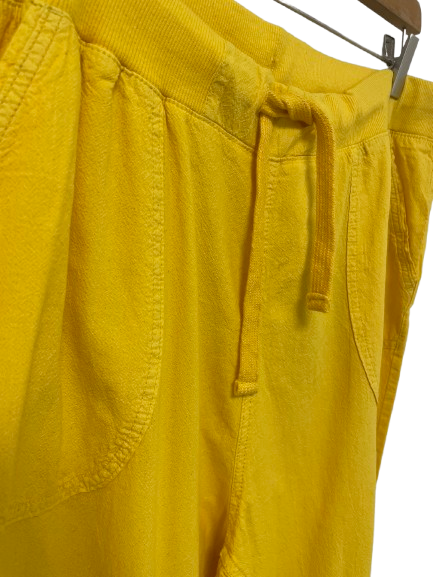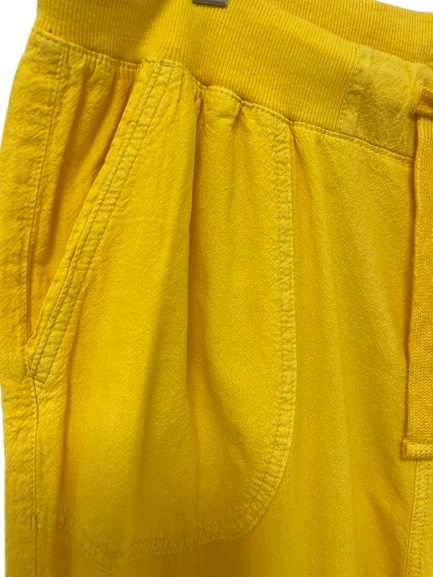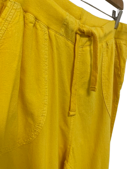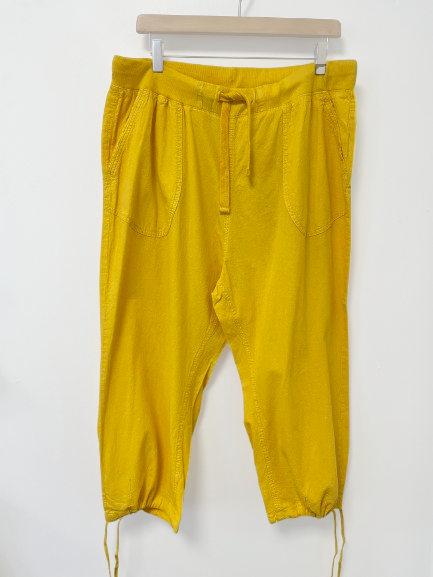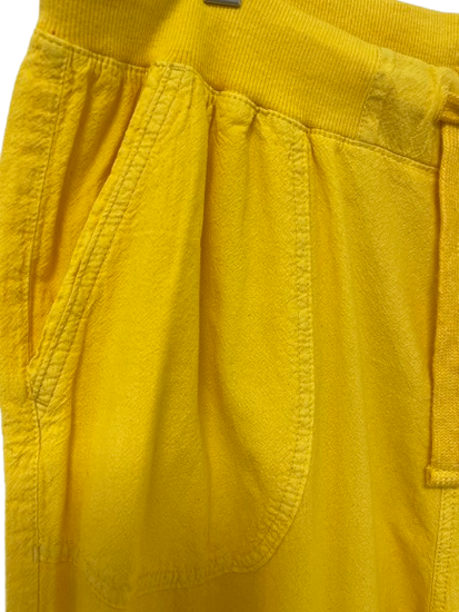 Rib i taljen med snor. Længde til under knæene med mulighed for at snøre dem ind. Påsyet lommer foran.
