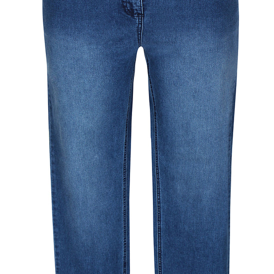 Disse jeans fra ZHENZI er det perfekte valg til dig, der ønsker et par alsidige og tidløse bukser med et moderne udtryk. Modellen har lige ben og en let tætsiddende pasform, der giver et flot, feminint look og masser af komfort. Det bløde denim-materiale består af 65% bomuld, 33% polyester og 2% elastan, hvilket sikrer god bevægelsesfrihed og en behagelig følelse hele dagen.