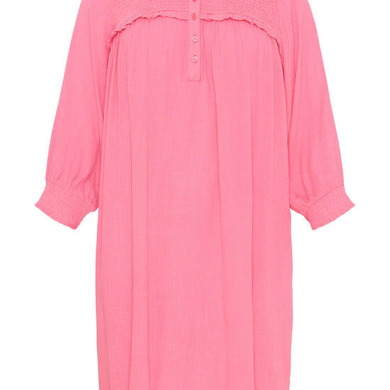 Let og luftig kjole. Kjolen er med ¾ ærmer og smock detaljer. Rund halsudskæring med v-åbning foran samt 4 knapper ned. Klassisk og enkel kjole med lækre detaljer, som gør at den er velegnet til både hverdagsbrug, festlige lejligheder og til ferien. Et must-have til foråret og sommeren.
