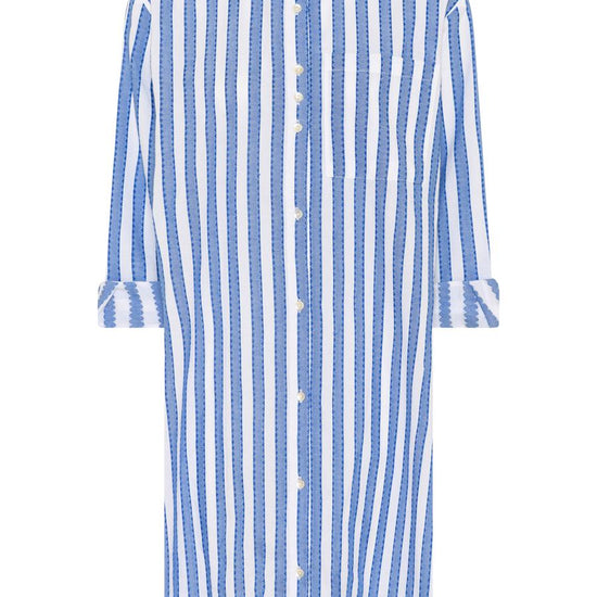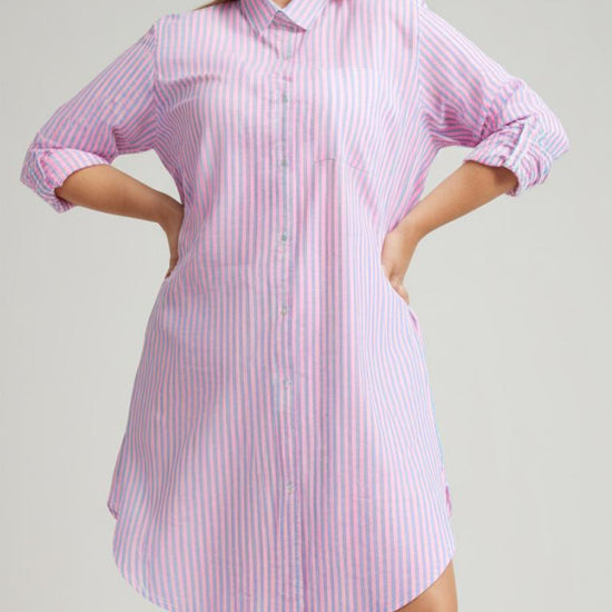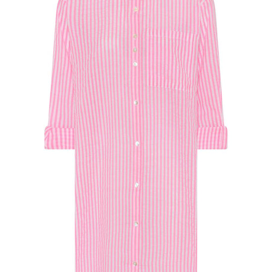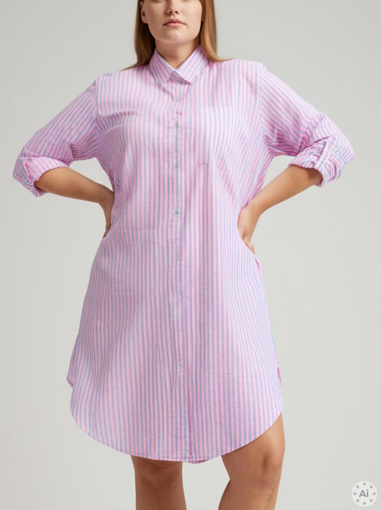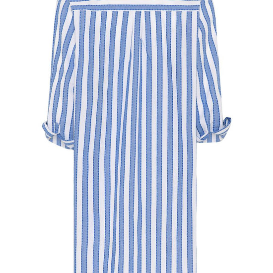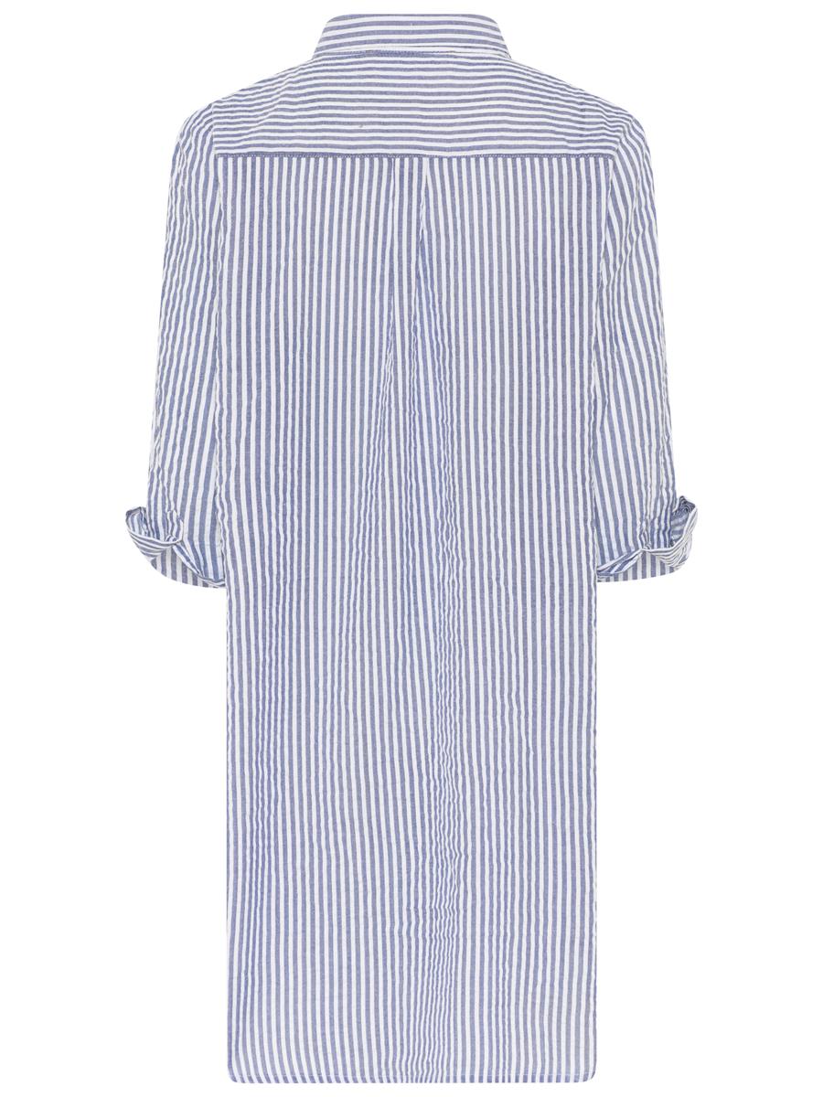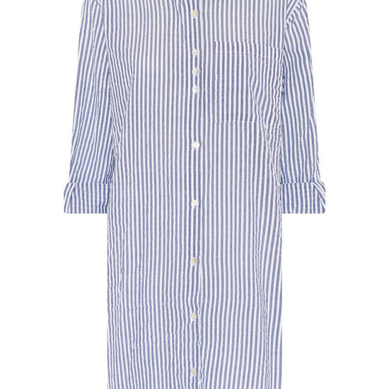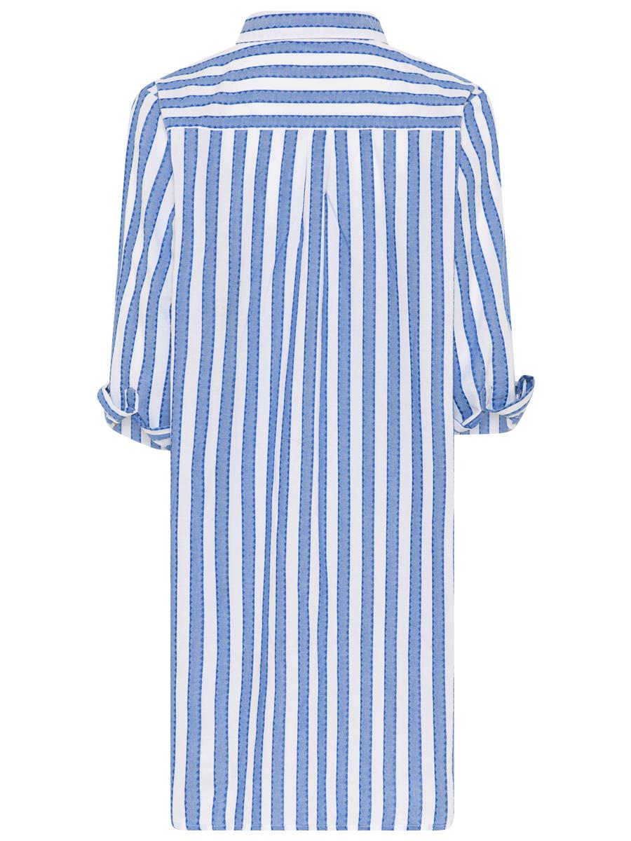 Oplev denne smarte, lange skjorte fra Etage, der kombinerer komfort og stil på bedste vis. Skjorten er lavet af 100% bomuld, hvilket sikrer en blød og behagelig følelse mod huden. Den fås i tre iøjnefaldende farvekombinationer: lyserød stribet, blå stribet og Blue Iris stribet, hvilket giver dig mulighed for at vælge den stil, der passer bedst til din garderobe.