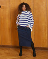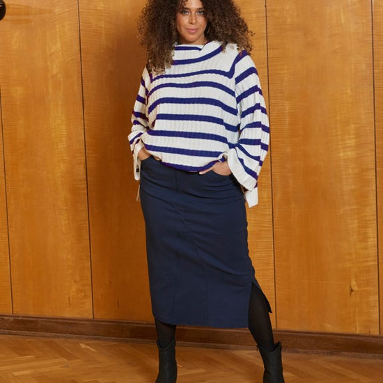 Den elegante navy farve gør denne nederdel til et alsidigt valg, der kan styles til både hverdag og fest. Med en diskret slids i siden sikrer nederdelen både stil og bevægelsesfrihed. Kombiner den med en Zhenzi bluse eller en striktrøje for et komplet look, der udstråler selvsikkerhed og stil. Denne nederdel er perfekt til enhver kvinde, der ønsker at tilføje et klassisk, men moderne stykke tøj til sin samling. Gør dig klar til at imponere med Zhenzi's navy nederdel!