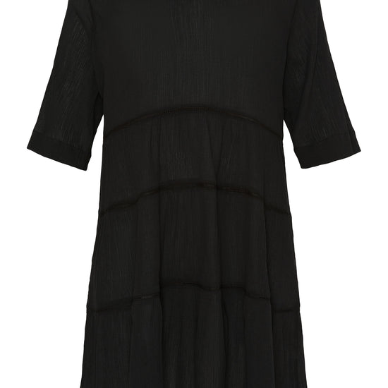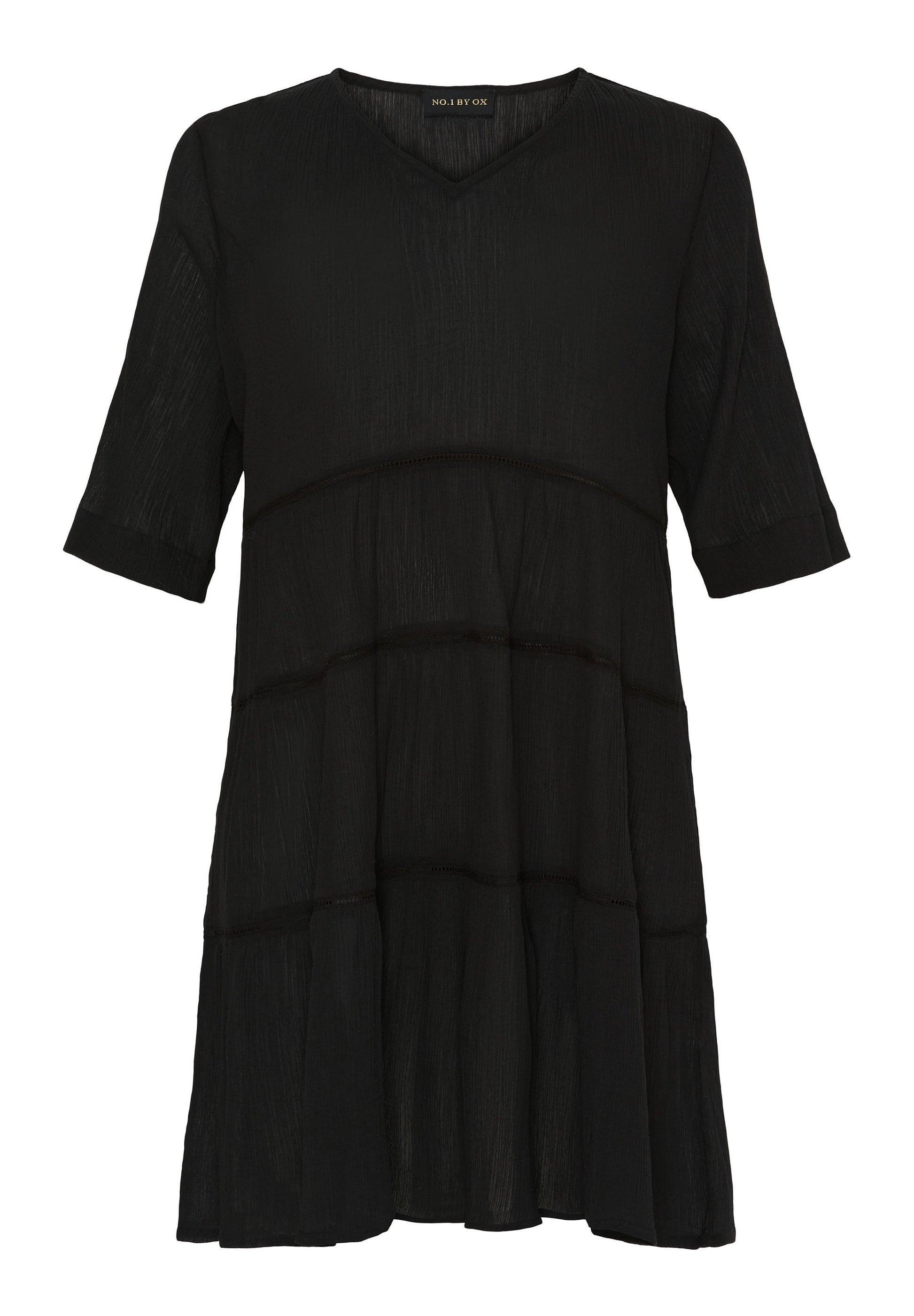 Oplev den perfekte kombination af elegance og komfort med denne smukke kjole fra NO. 1 BY OX. Med sin regulære pasform og stilfulde V-udskæring foran, tilbyder kjolen en afslappende og luftig pasform, der er perfekt til enhver lejlighed. Korte, løse ærmer og det kreppede stof i 100% bomuld tilføjer et eksklusivt touch.