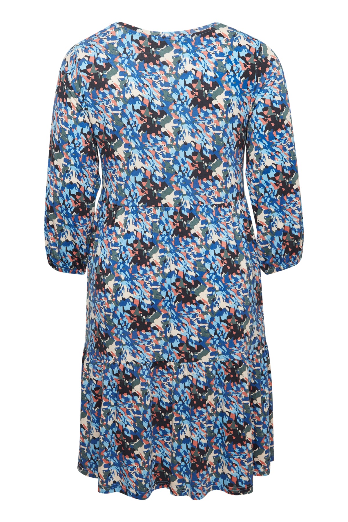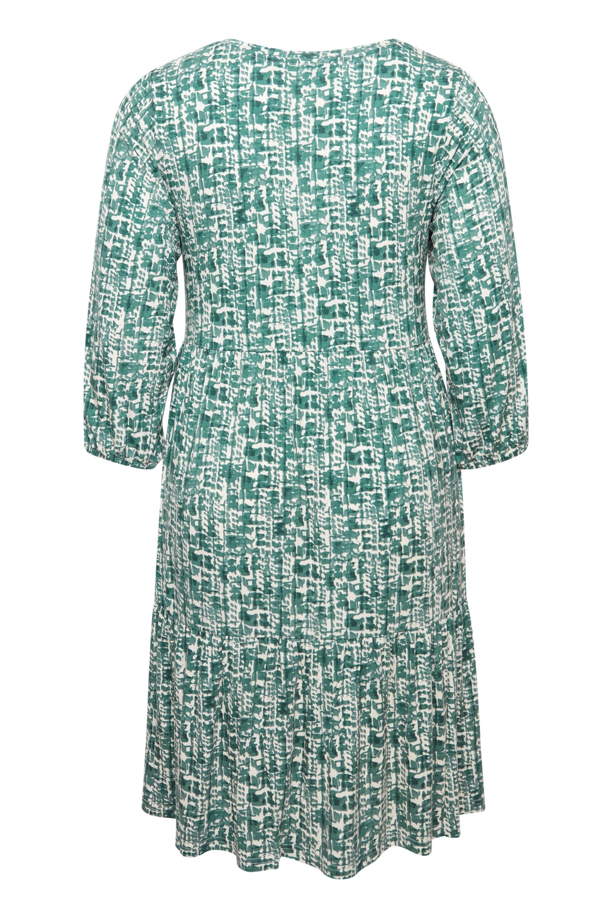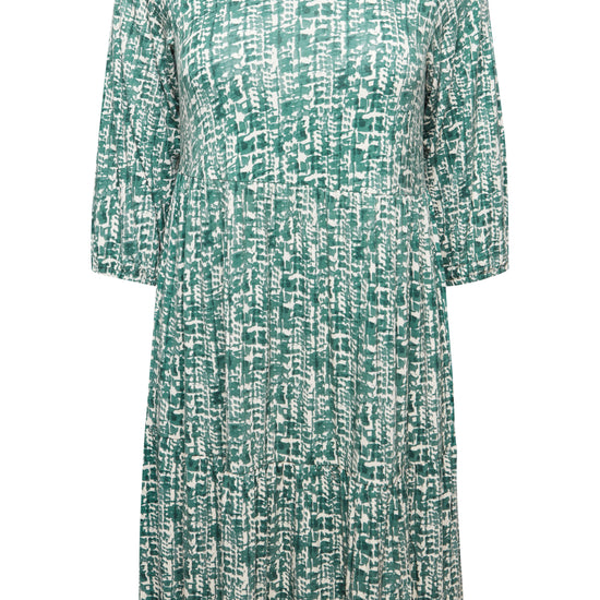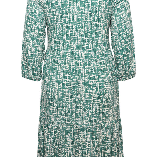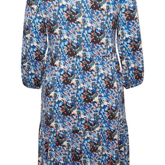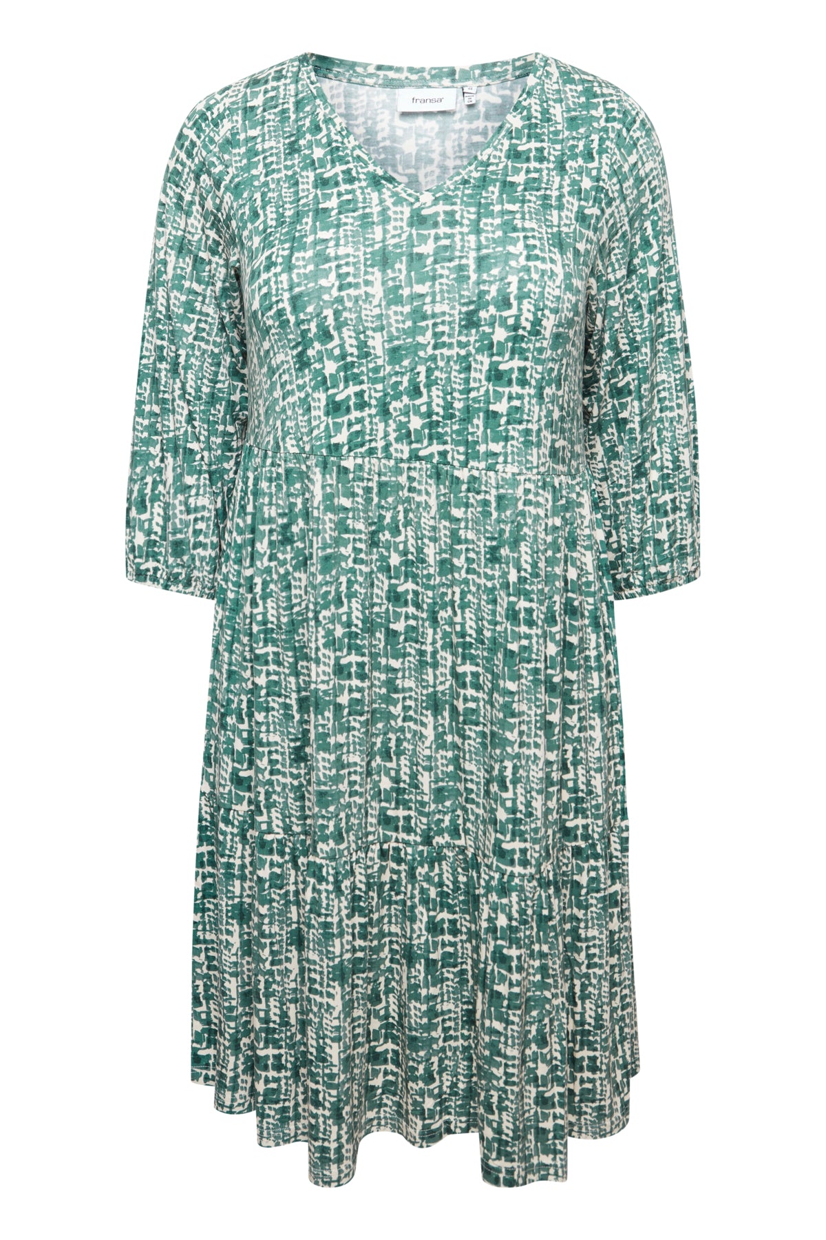 Forkæl dig selv med denne elegante kjole i viskosejersey fra Fransa Plus Size Selection. Det farverige, abstrakte mønster giver et moderne og frisk udtryk. Kjolen har en flatterende V-hals, elastik i ærmerne og en overskæring i taljen, som fremhæver din figur på smukkeste vis.