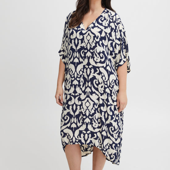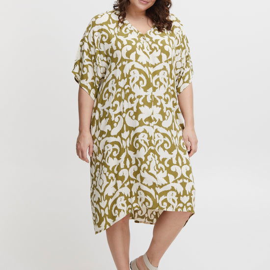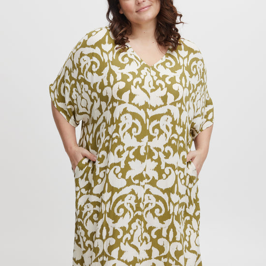 Denne kjole fra Plus Size kjolekollektionen giver dig utallige stylingmuligheder – uanset om du vil være afslappet eller elegant. Kombinér den med et par smarte accessories for et sofistikeret udtryk, eller brug sneakers til et casual hverdagslook. Kjolen er både komfortabel og stilfuld, så du er godt klædt på til enhver anledning.
