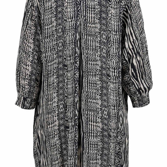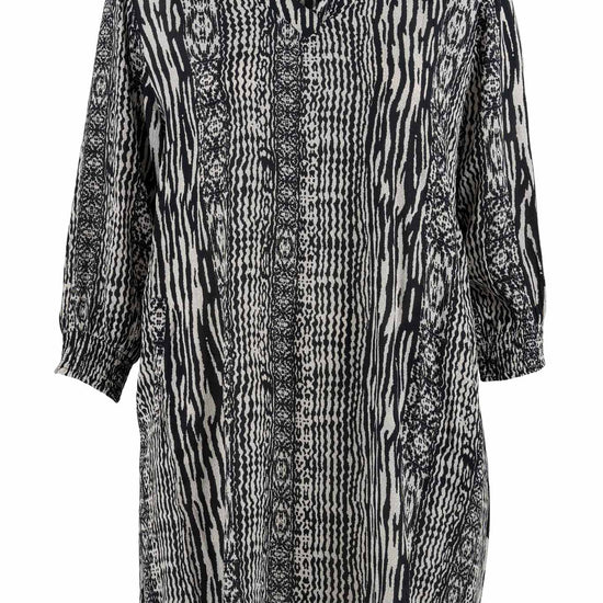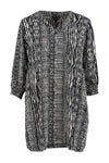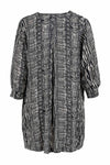 Fremstillet i blødt 100% viskose, sikrer denne tunic dig en komfortabel og flatterende pasform. Den A-formede silhuet med side lommer og en dekorativ dobbeltlaget fold i ryggen tilføjer et unikt touch, mens V-halsen og 7/8 ærmerne skaber et afslappet, men stilfuldt look.