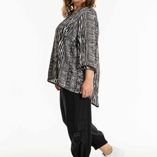 Denne Gozzip Woman blouse er designet til at give en behagelig og afslappet pasform. Modellen bærer størrelse M, og med målene halv bryst på 65 cm og en længde på 82 cm, sikres en god pasform. Vælg mellem størrelserne S, M, L og XL for at finde den størrelse, der passer dig bedst. Style denne alsidige bluse med plus-size jeans for et casual look eller med en plus-size nederdel til en mere formel begivenhed.