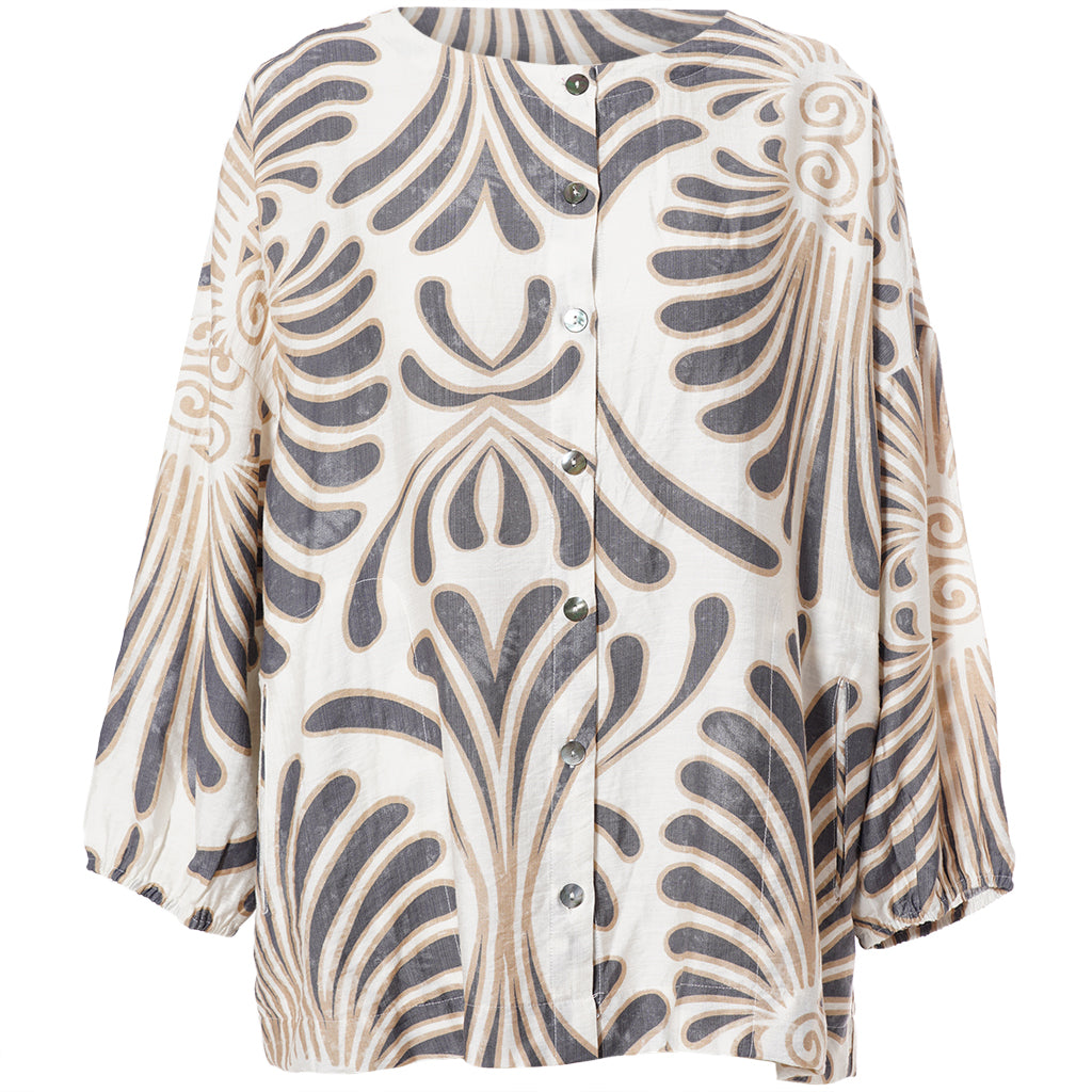 Oplev den perfekte kombination af stil og komfort med denne smukke bluse fra Gozzip Woman. Designet i en blanding af 90% viskose og 10% nylon, tilbyder denne bluse en luksuriøs fornemmelse mod huden. Dens store print i afdæmpede off-white og grå nuancer tilføjer et kunstnerisk touch, der skiller sig ud i mængden.