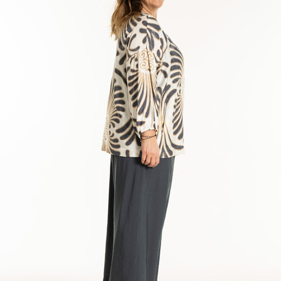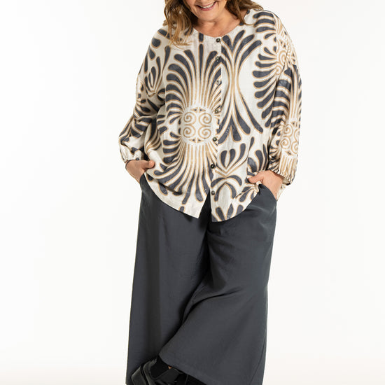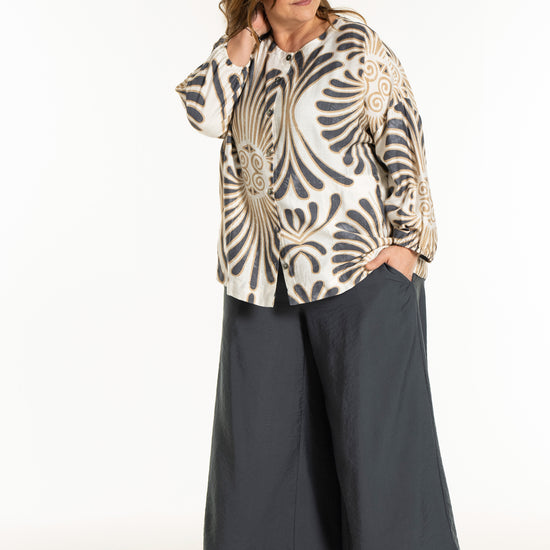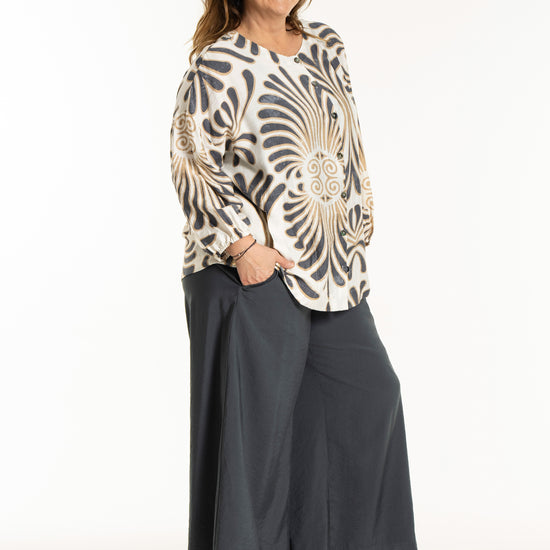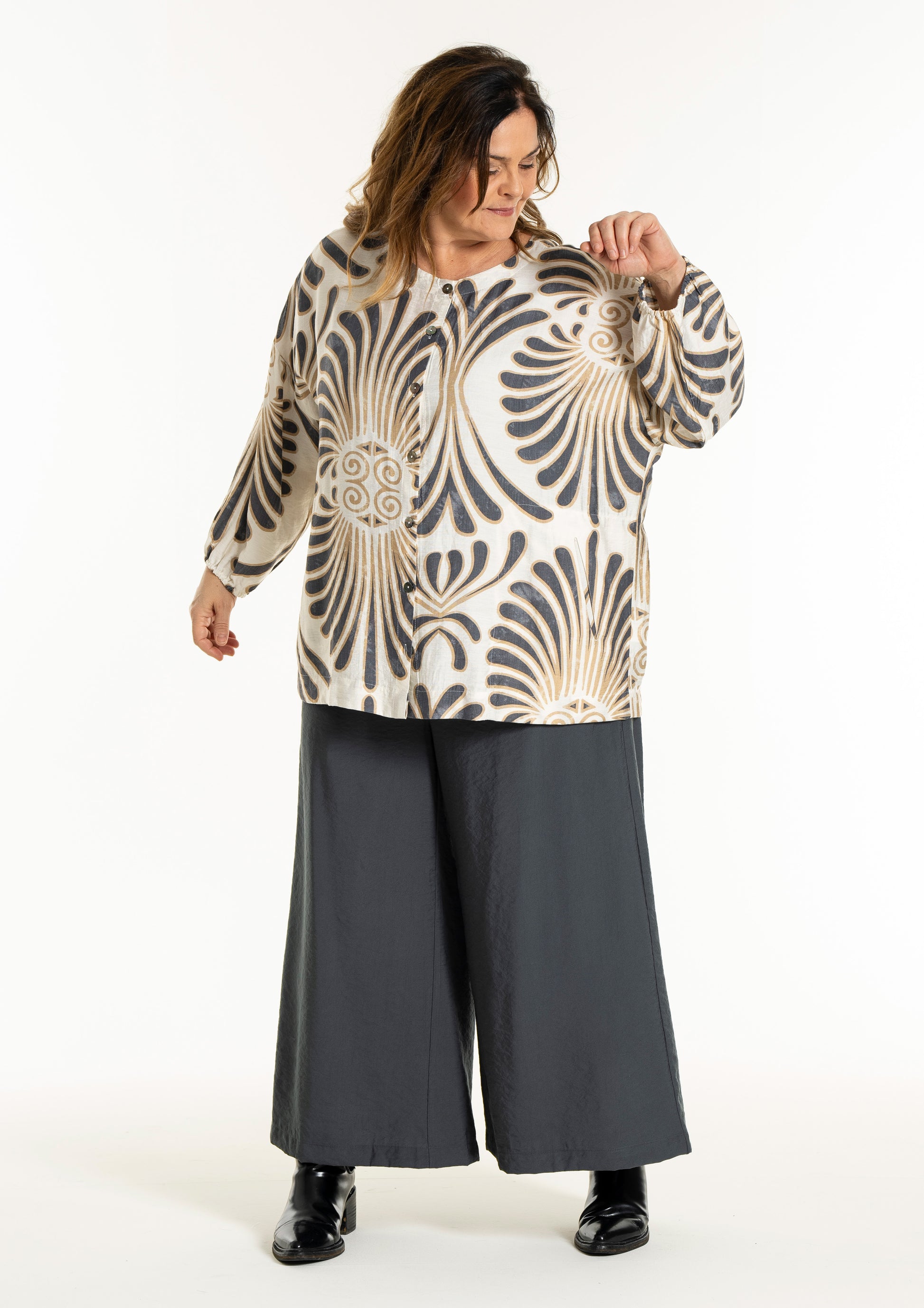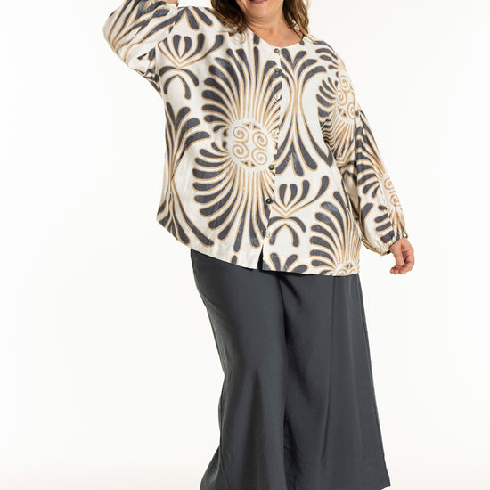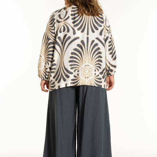 Den løse pasform gør blusen ideel til både afslappede og formelle lejligheder, og den kan nemt styles med både plus size bukser og nederdele for et komplet look.