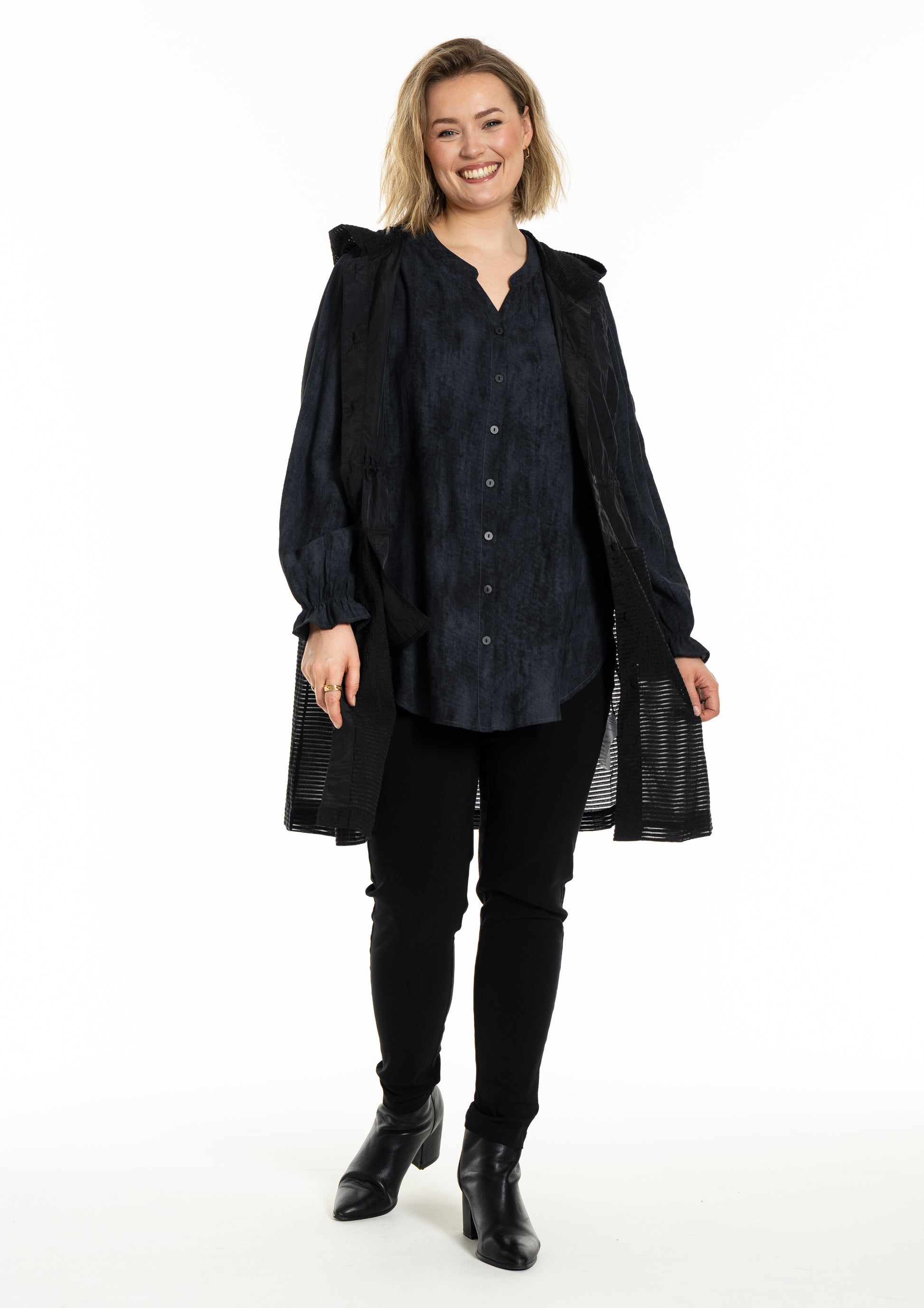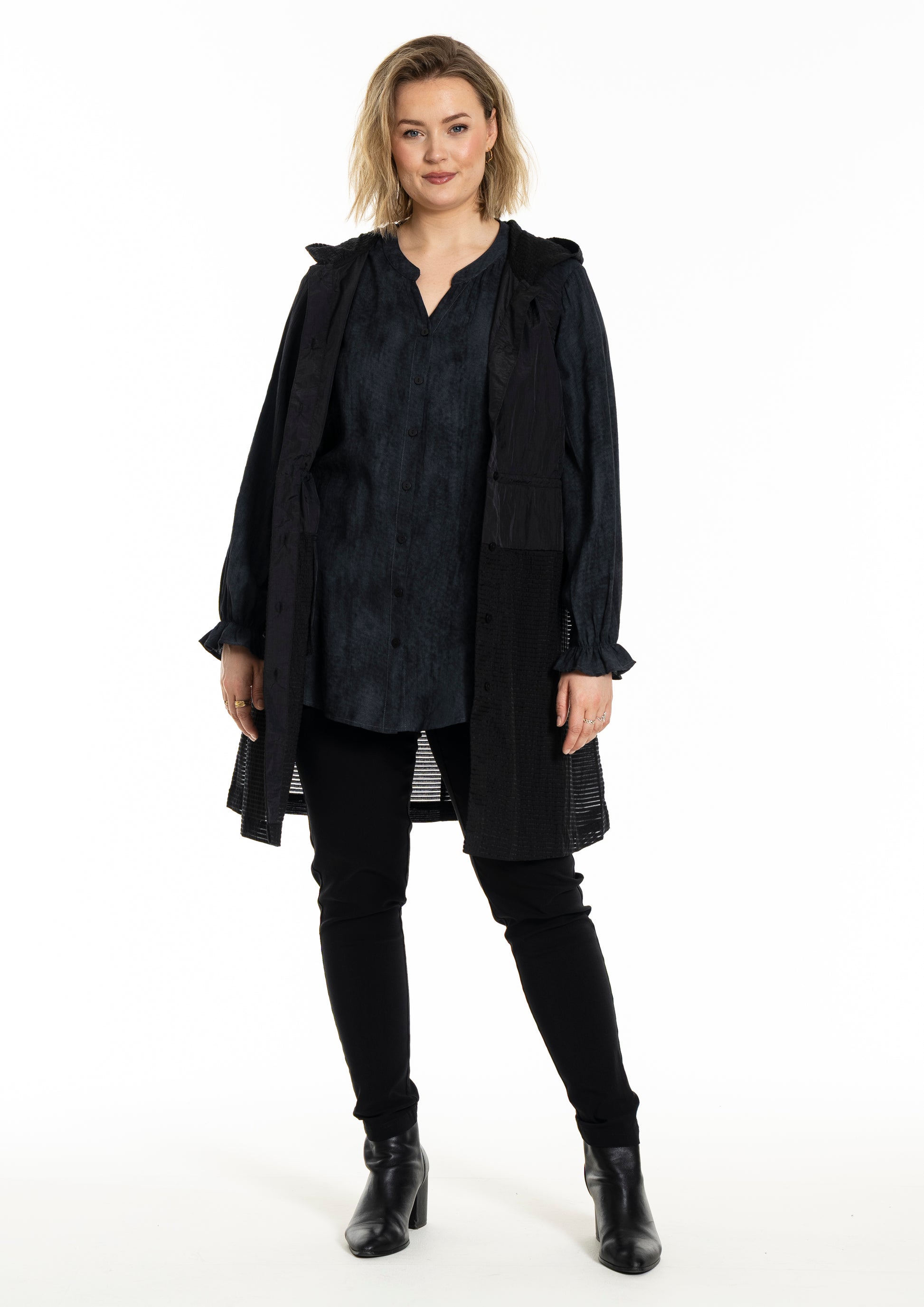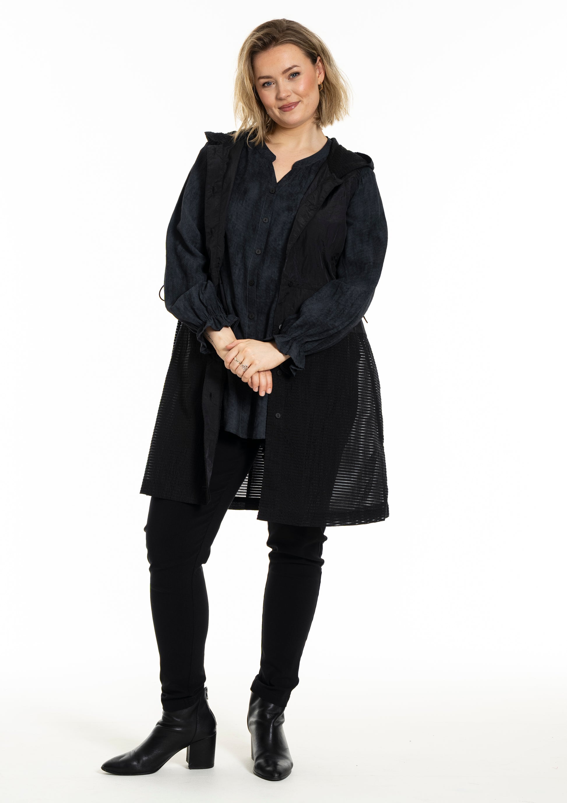 Denne style kommer fra Gozzip, som er kendt for deres rummelige pasformer og smarte designs til kvinder med kurver. Kvaliteten føles slidstærk, men stadig blød mod kroppen, hvilket gør den til en favorit i hverdagen. Du får her en vest i plus size, der forener det praktiske med det moderigtige på bedste vis.