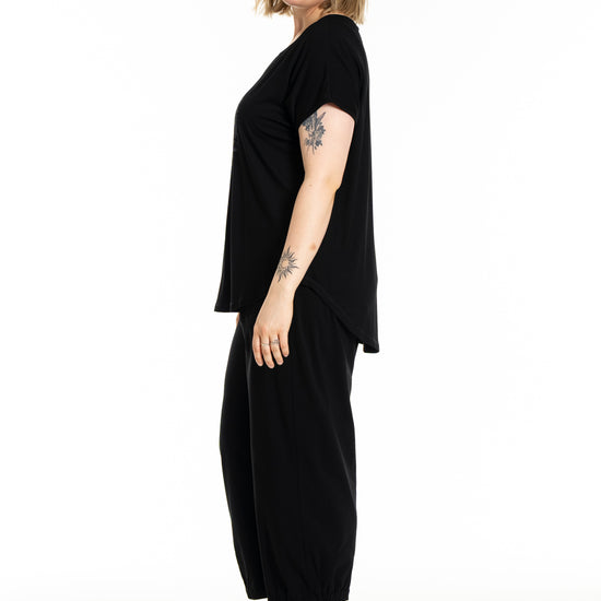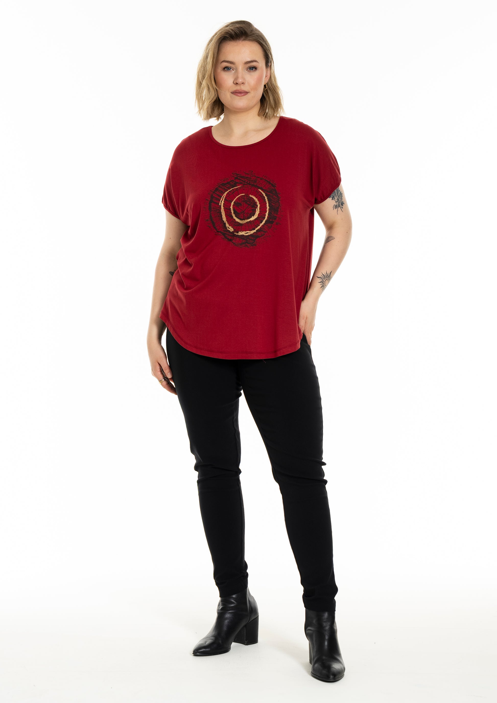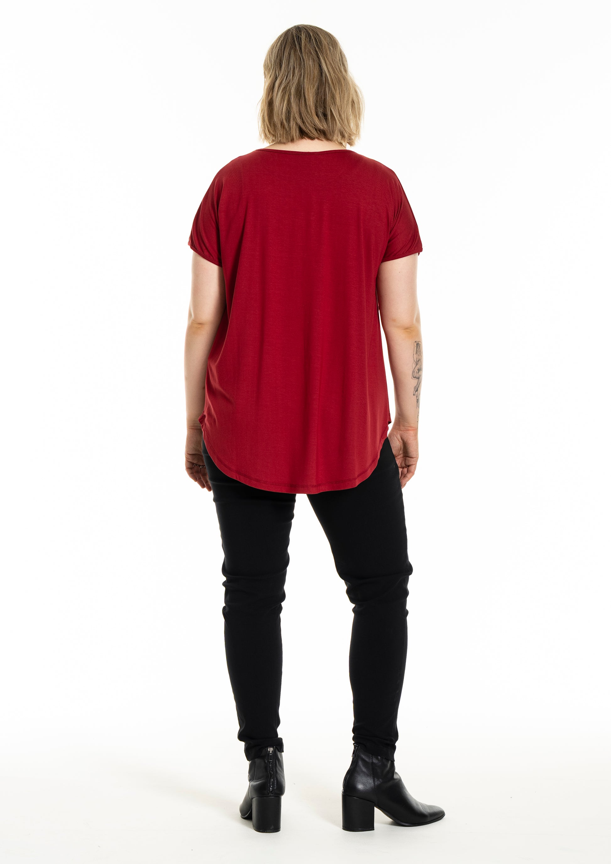 T-shirten er let at kombinere med både plus size jeans og plus size nederdele. Vælg mellem Scarlet rød eller klassisk sort, og oplev en pasform, der smigrer alle kropstyper. Fås i størrelserne S-XL.