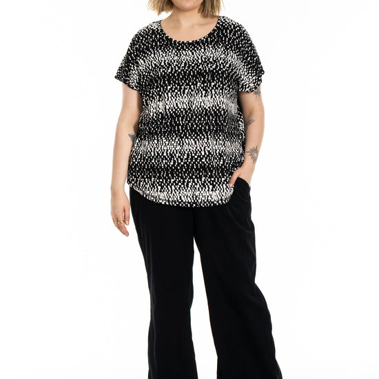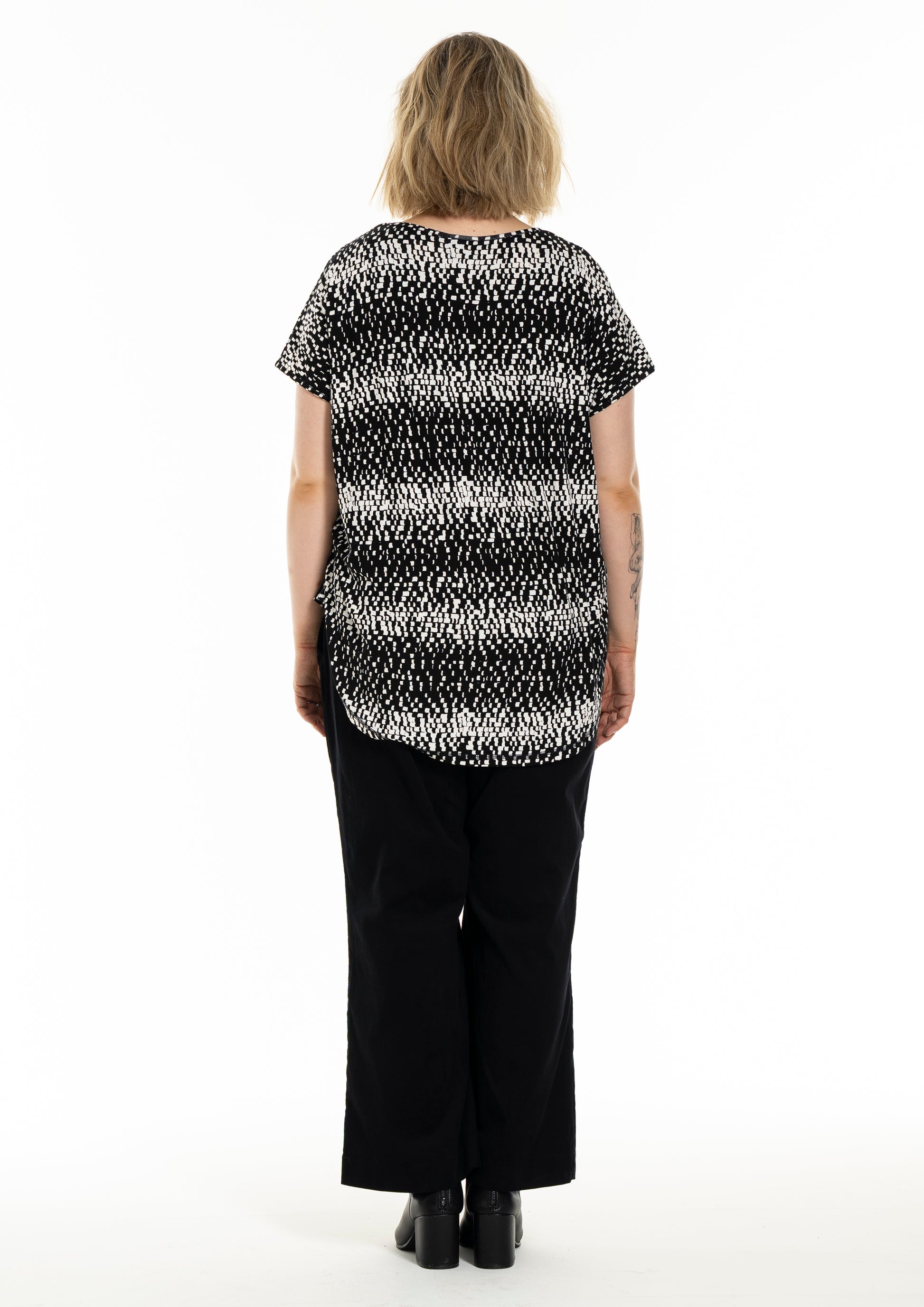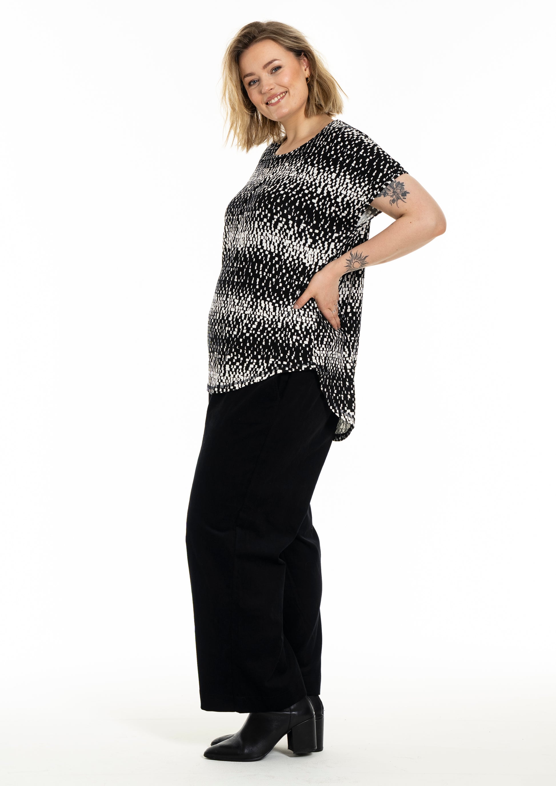 T-shirten er alsidig og kan styles til både arbejdet og fritiden. Kombinér den med et par plus size jeans eller vælg et par komfortable plus size bukser for et afslappet, men gennemført look. Den bløde kvalitet og det stilrene print gør denne T-shirt til et must-have i garderoben.