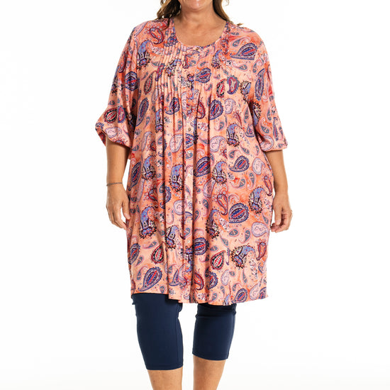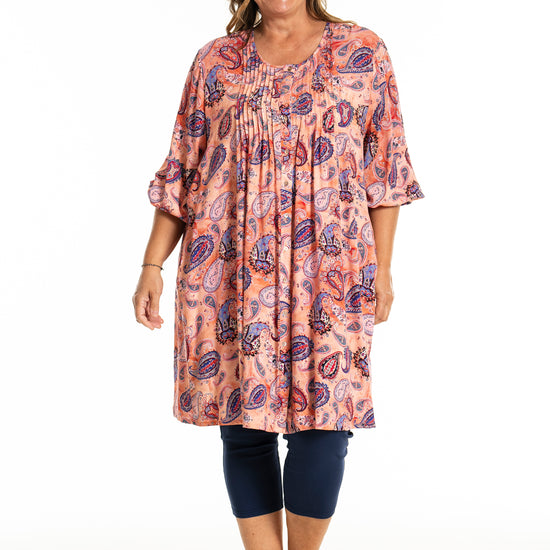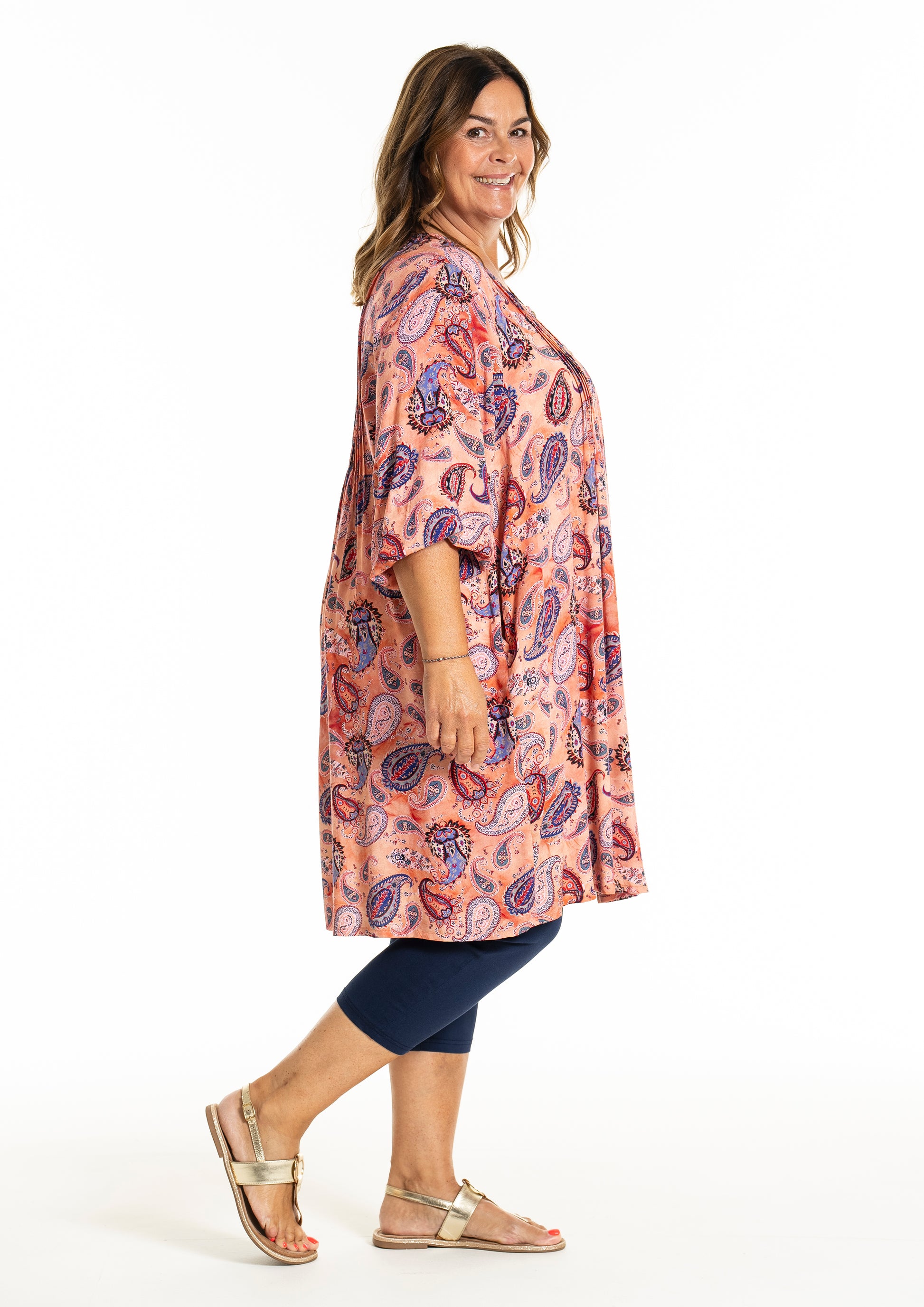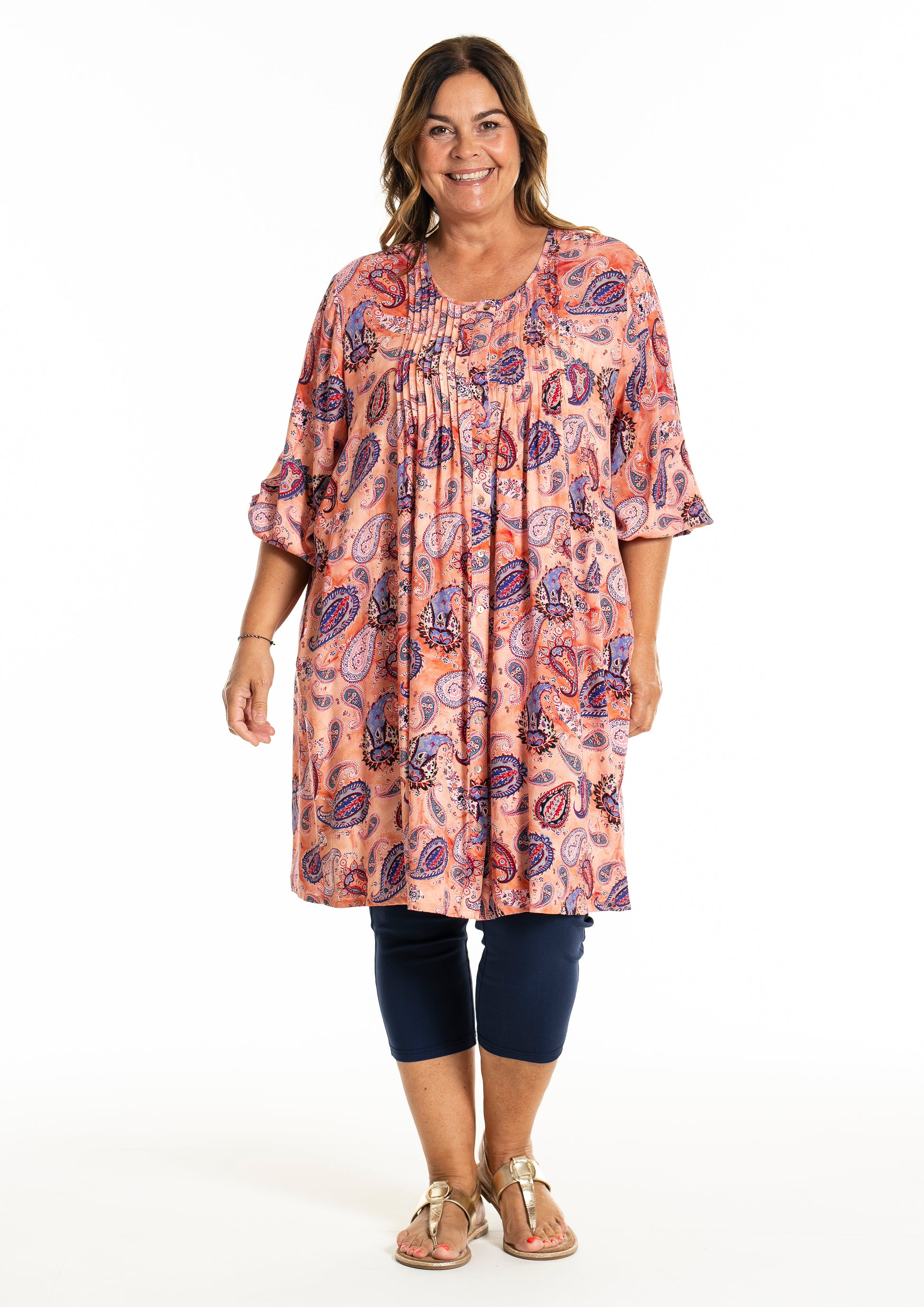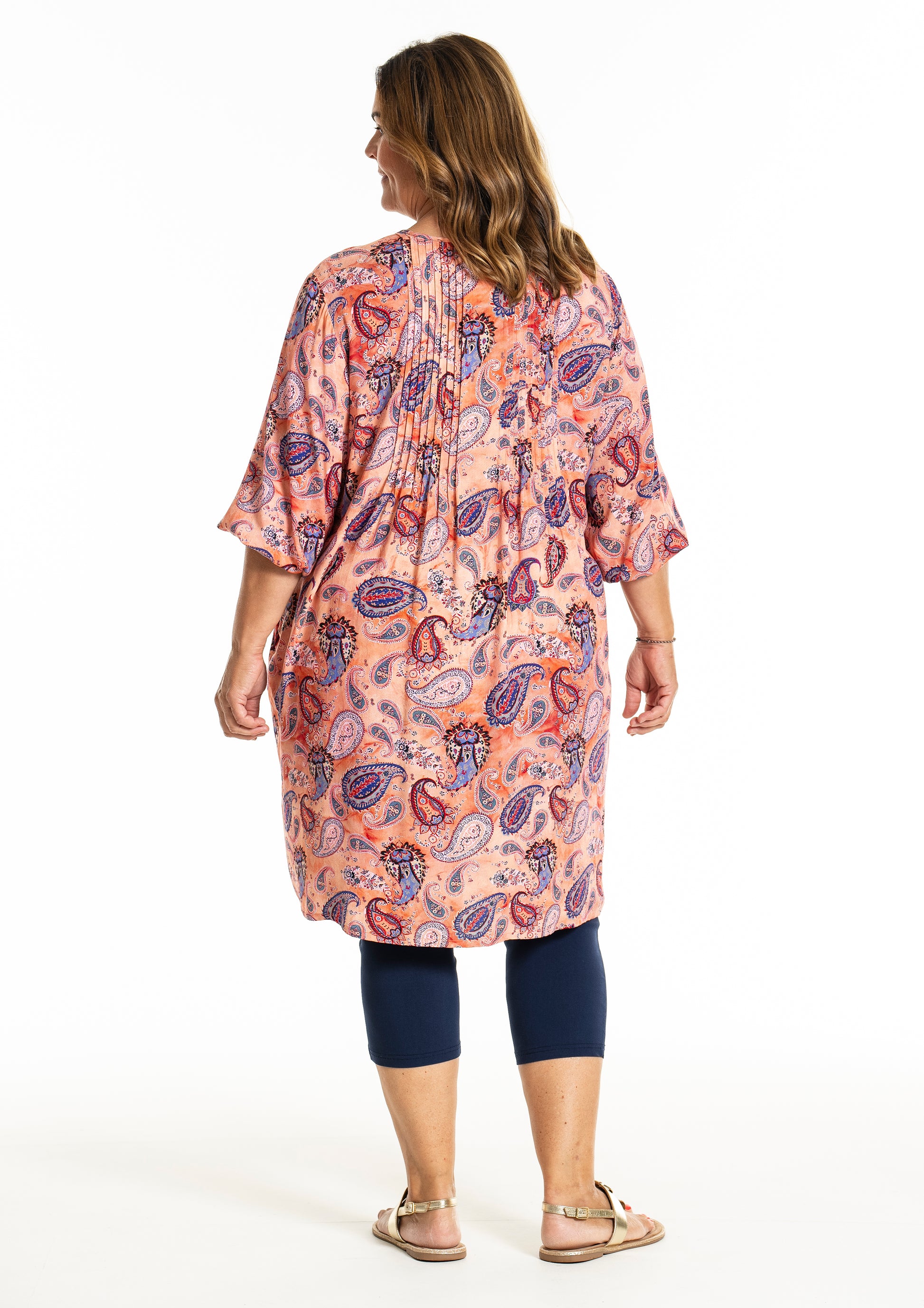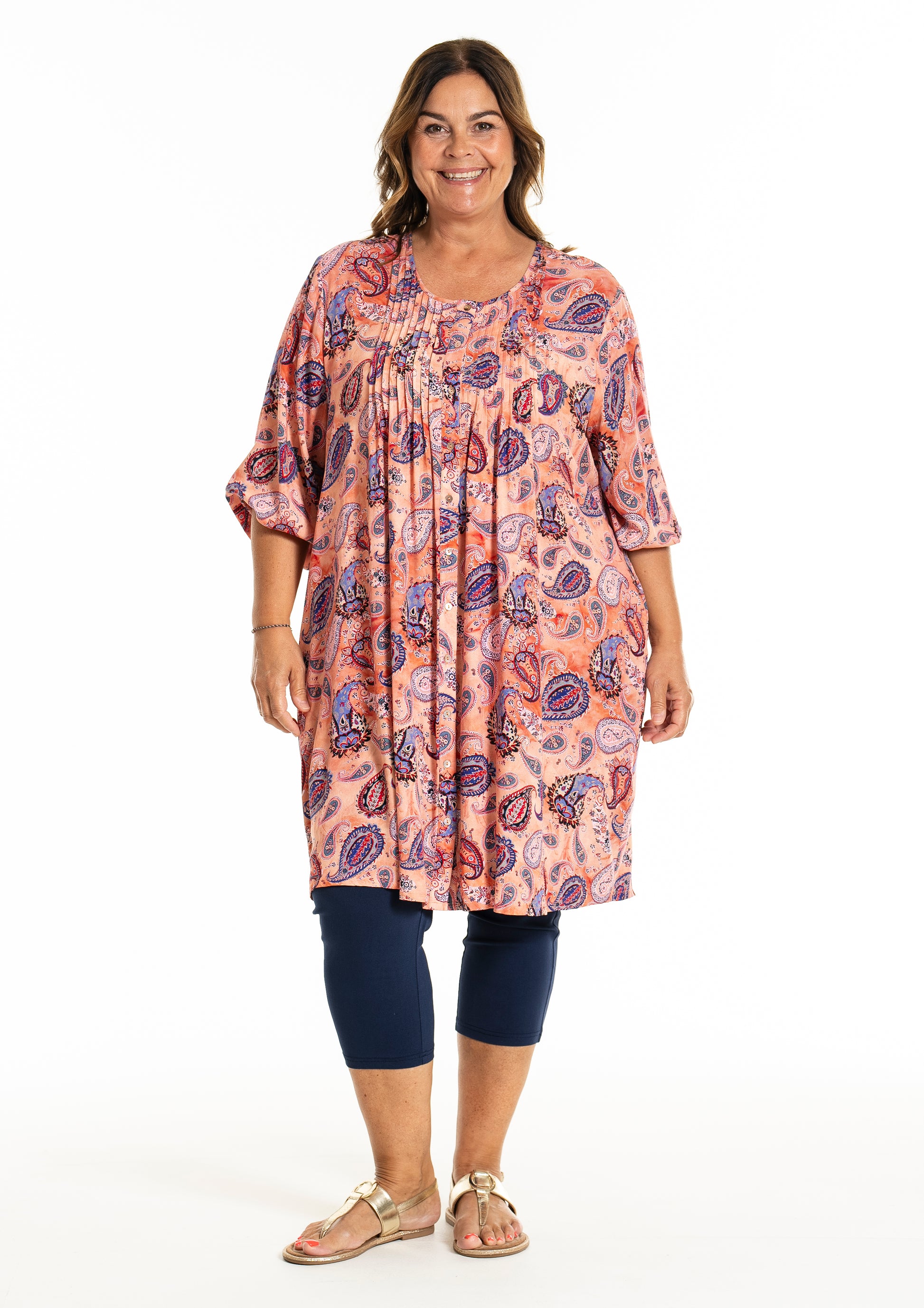 Tunikaen er med rund hals og klædelige bisse-læg både foran og bagpå.