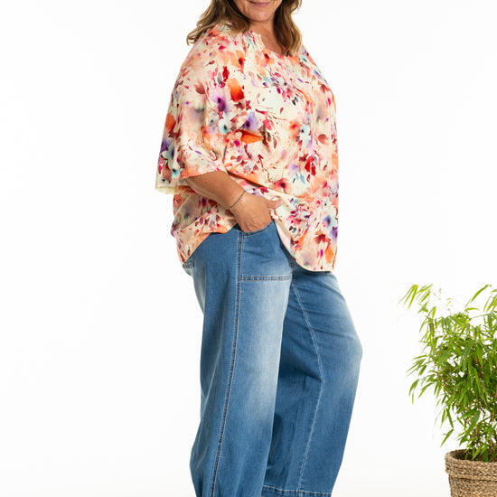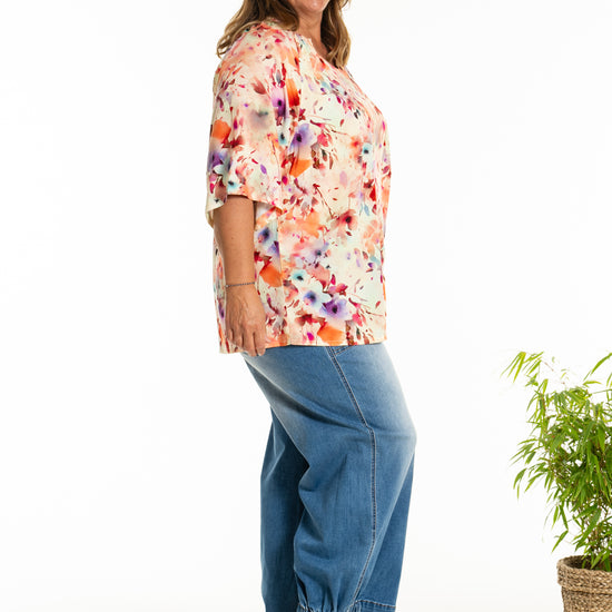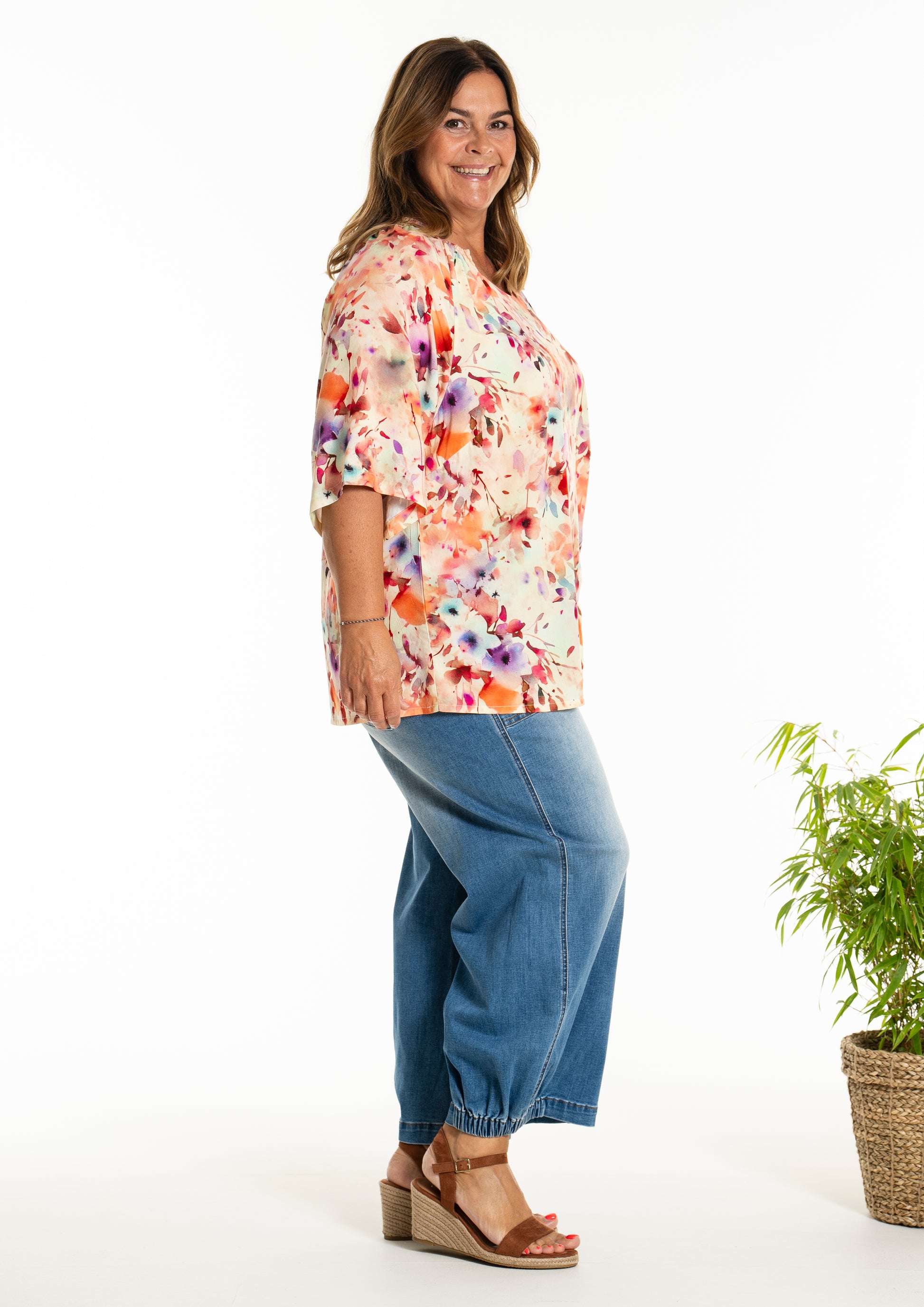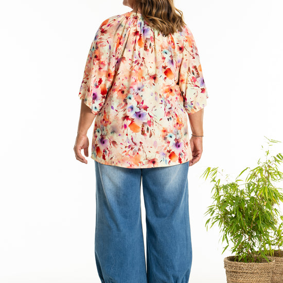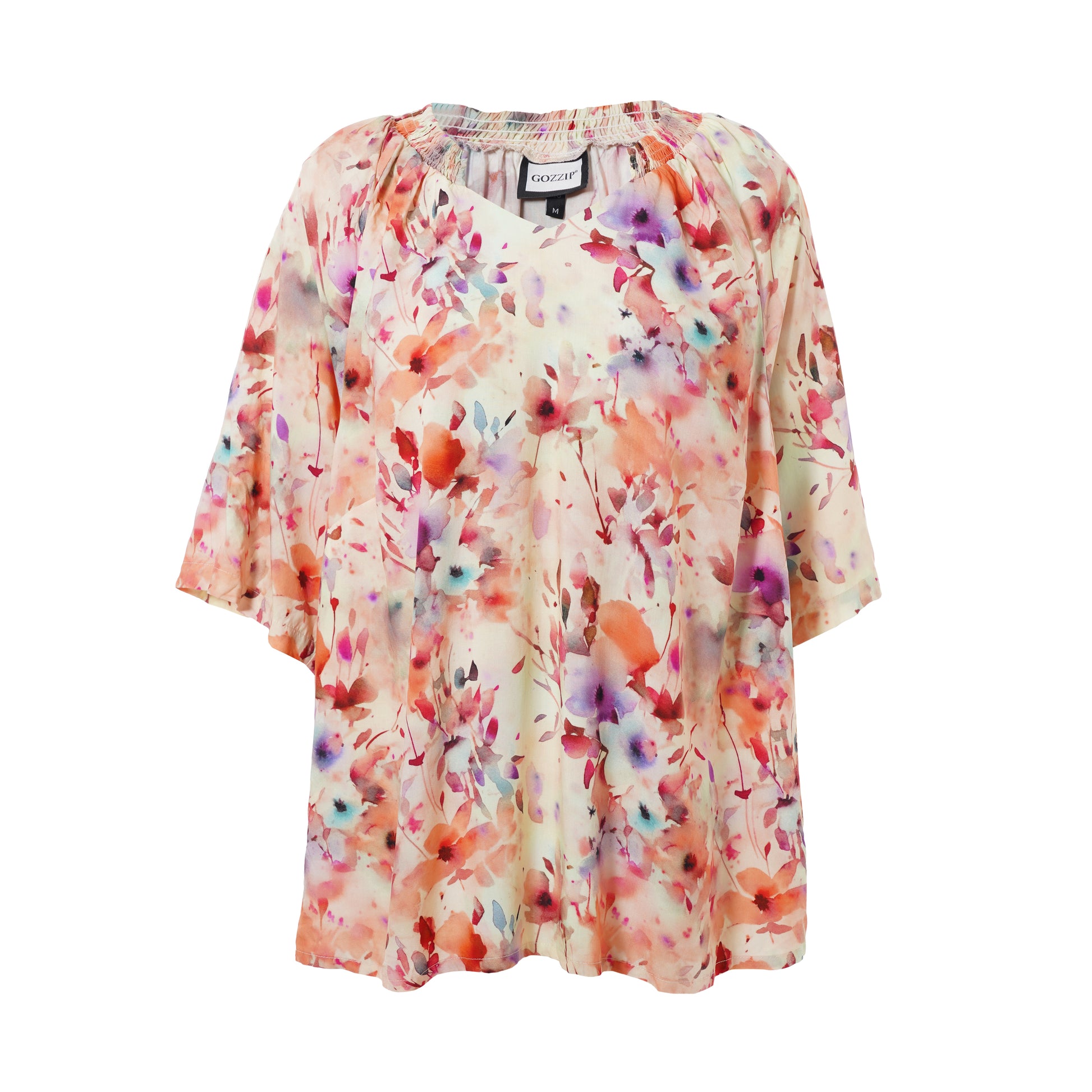 Oplev den elegante og komfortable bluse fra Gozzip Woman, der kombinerer stil og komfort i én. Denne bluse er fremstillet af 100% viskose, hvilket sikrer en blød og let fornemmelse mod huden. Med sit farverige blomsterprint på en lys baggrund tilføjer den et friskt pust til enhver garderobe.