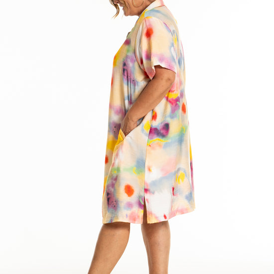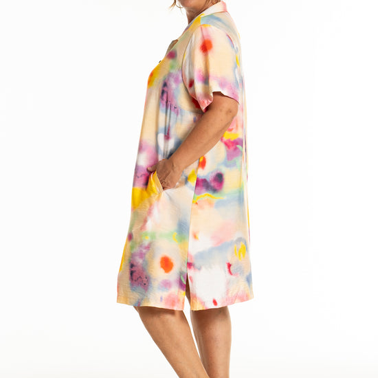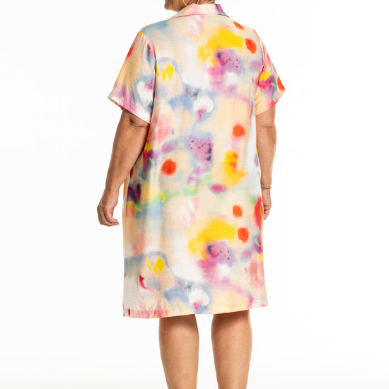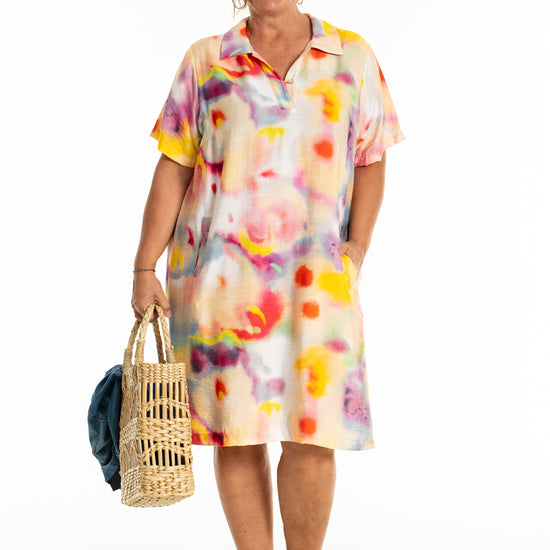 Kjole i A-snit med skjortekrave og knapdetalje i halsen