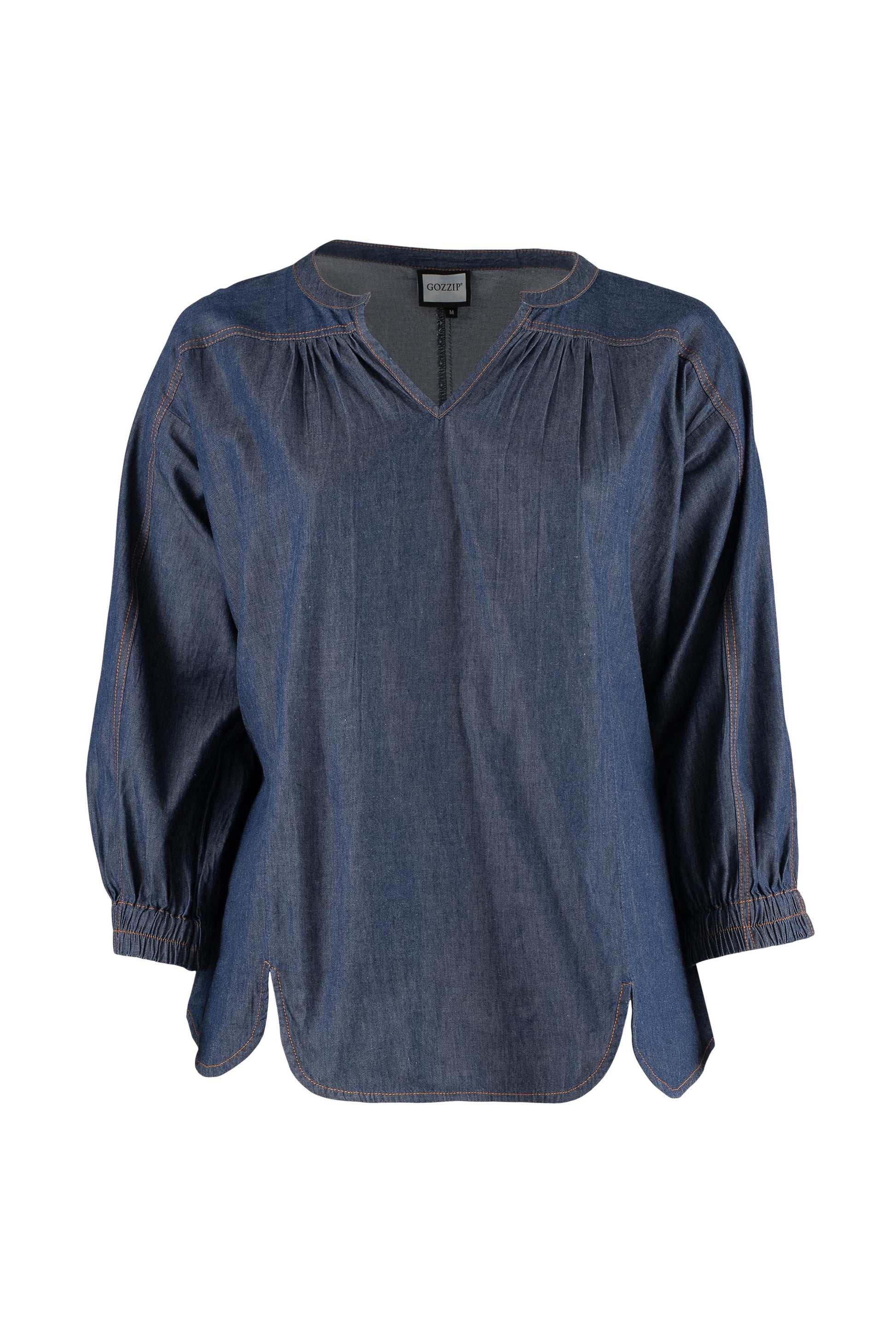 Den feminine denimbluse fra Gozzip Woman kombinerer komfort og stil på bedste vis. Blusen er syet i 100% bomuld og har klassiske, brunlige stikninger, der understreger det tidløse denimlook. Designet byder på: