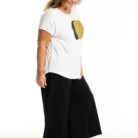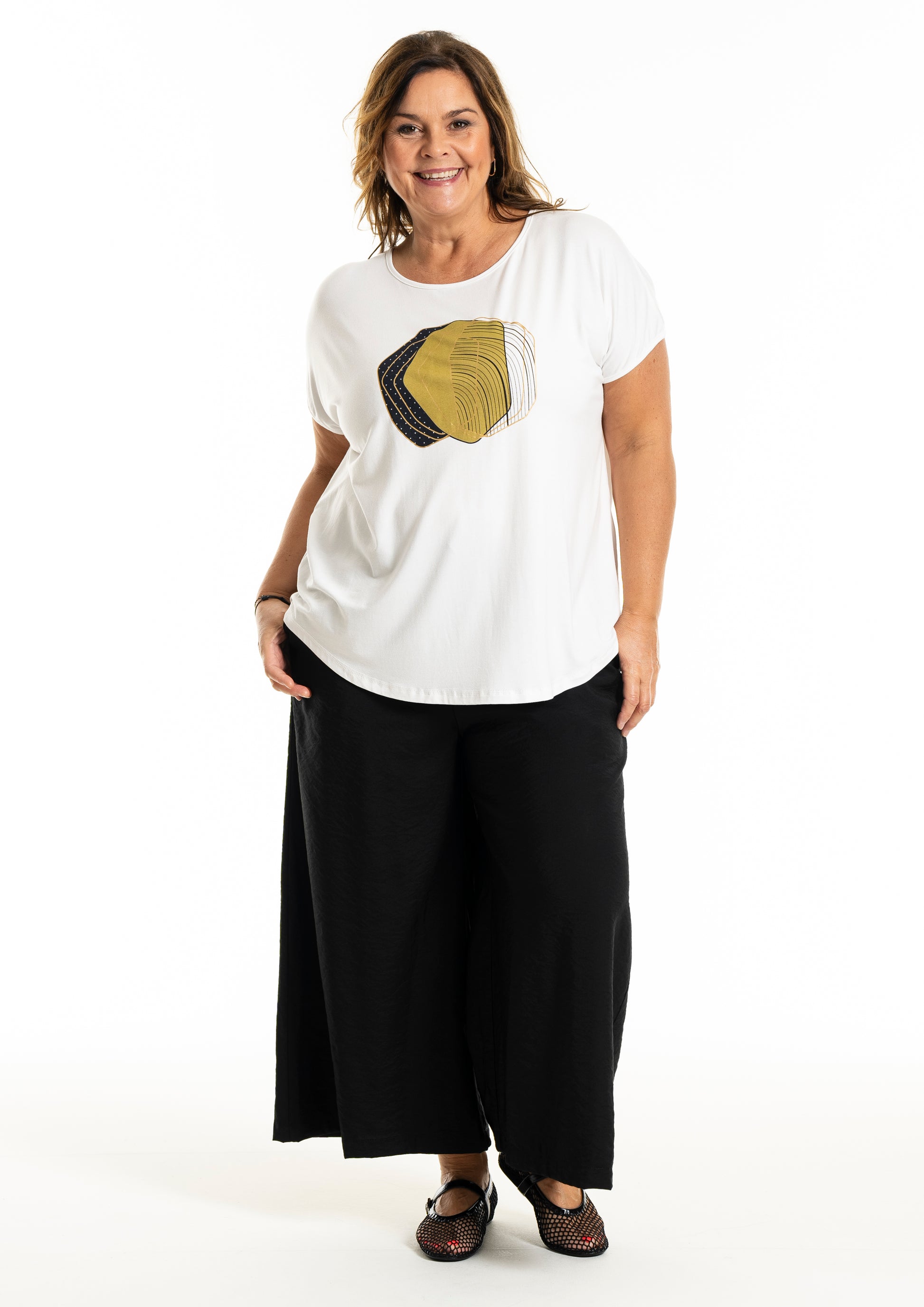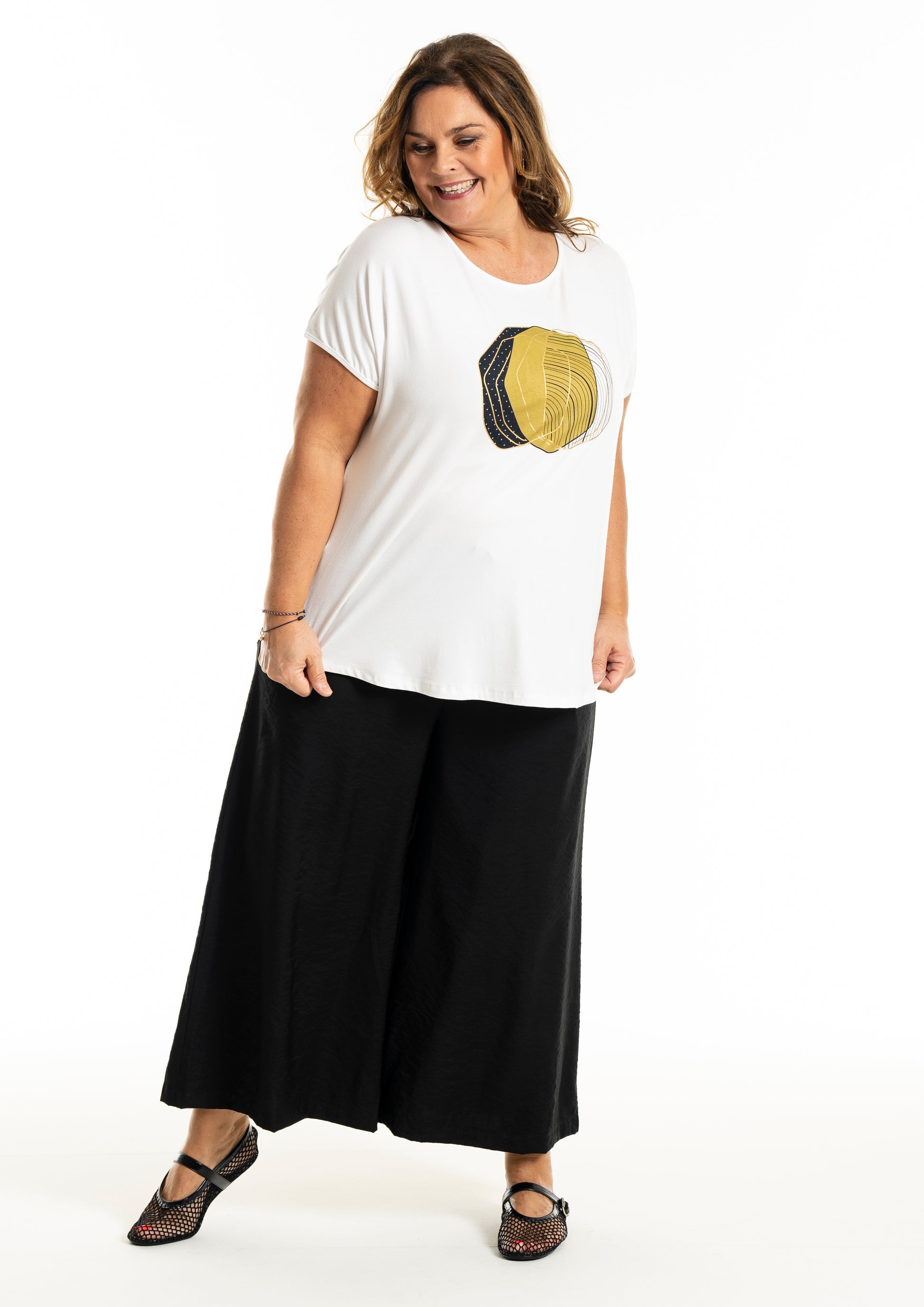 Disse bukser er ideelle til både afslappede og formelle begivenheder, med deres enkle og tidløse design, der gør dem lette at kombinere med forskellige toppe og skjorter. De brede ben og elastiske talje sikrer en behagelig pasform, mens de diskrete sidelommer tilføjer funktionalitet. Gozzip Woman bukser er et must-have i enhver garderobe, der søger stil uden at gå på kompromis med komfort.