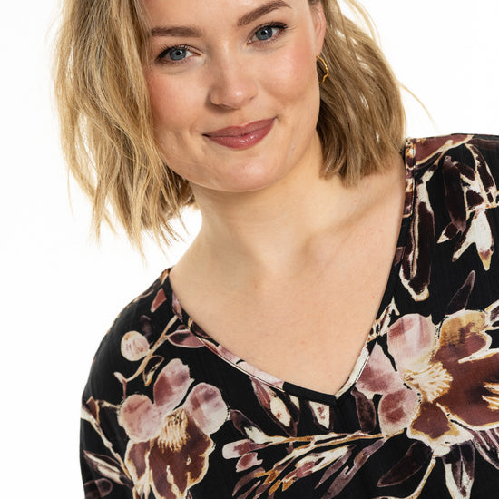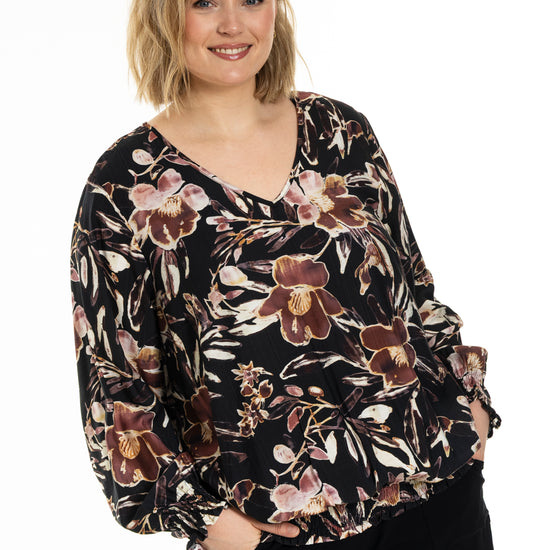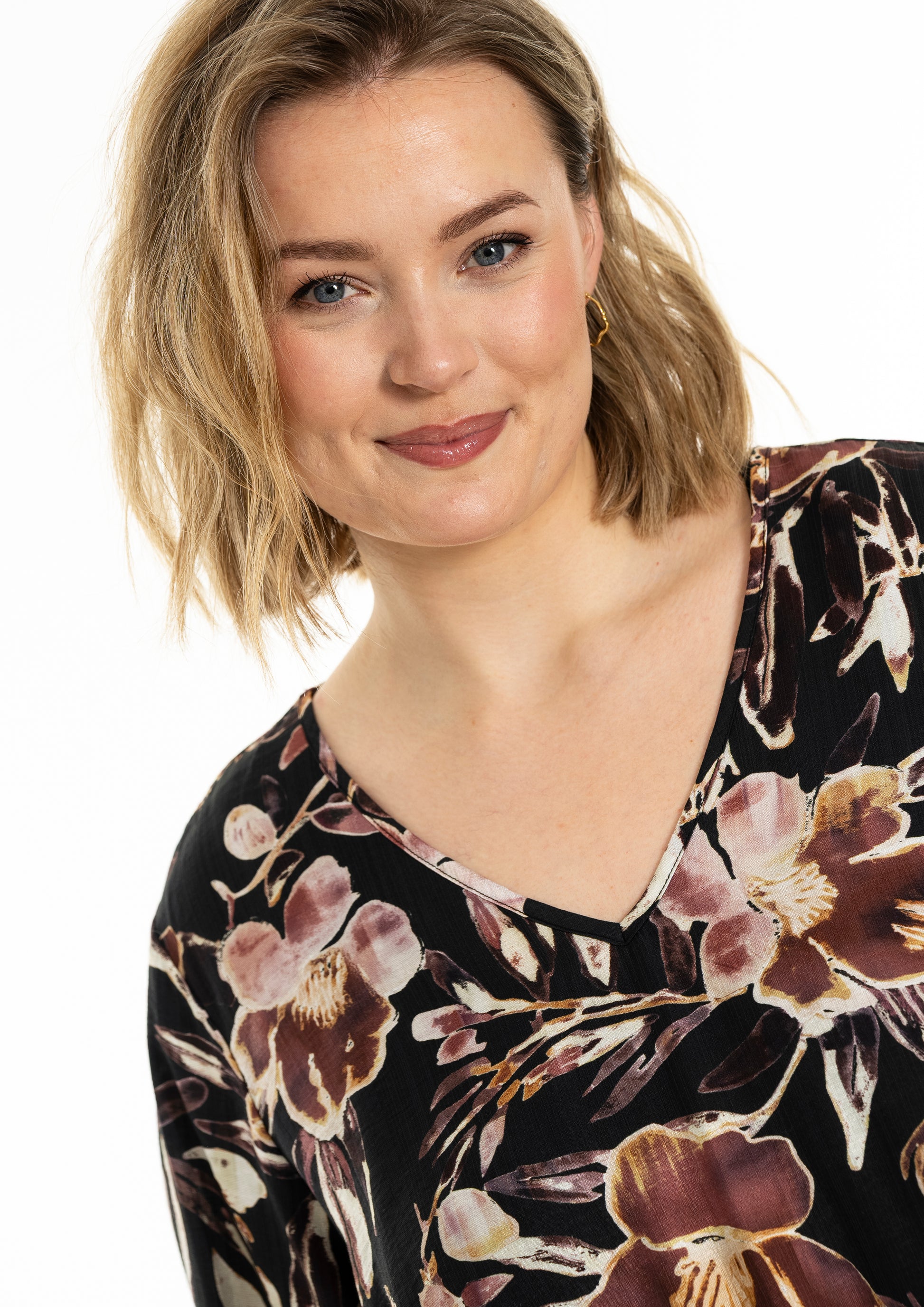 Den løse pasform og det elegante print gør blusen nem at style til enhver anledning. Brug den på arbejdet, til hverdag eller til festlige lejligheder. Se flere flotte styles blandt vores plus size bluser eller udforsk hele udvalget fra Gozzip.