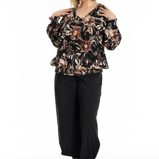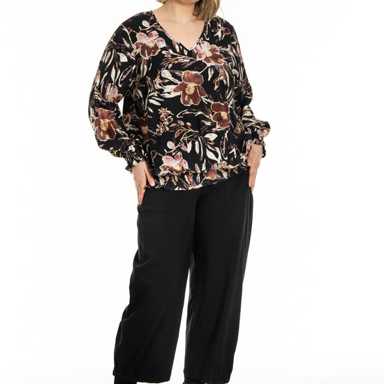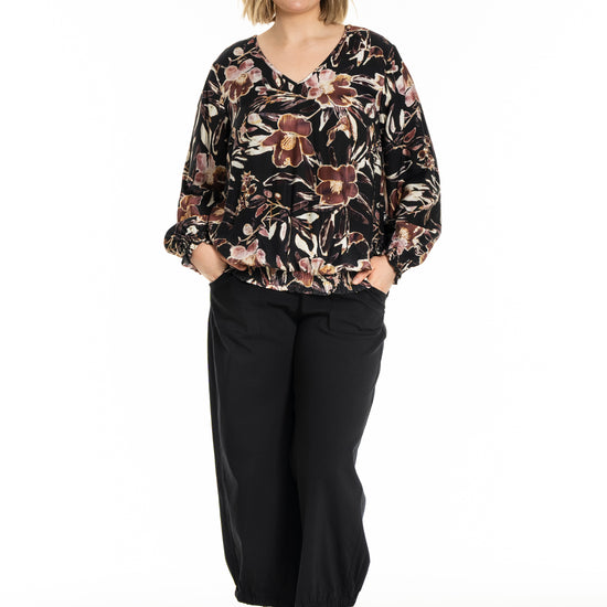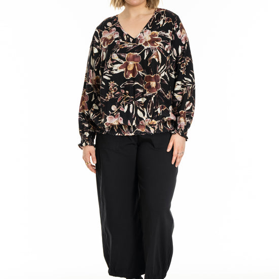 Stilfuld bluse fra Gozzip Woman med grafisk print