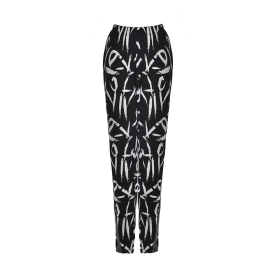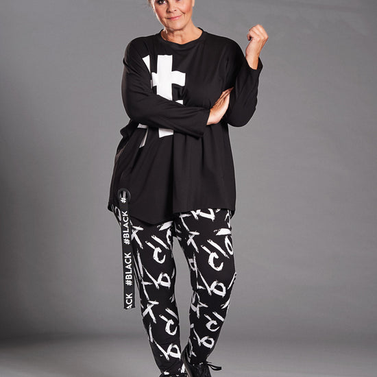 Leggings med folieprint, elastik i livet. PU-detaljer