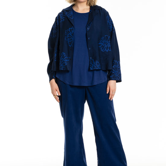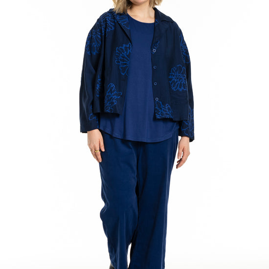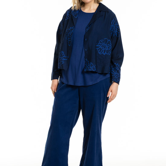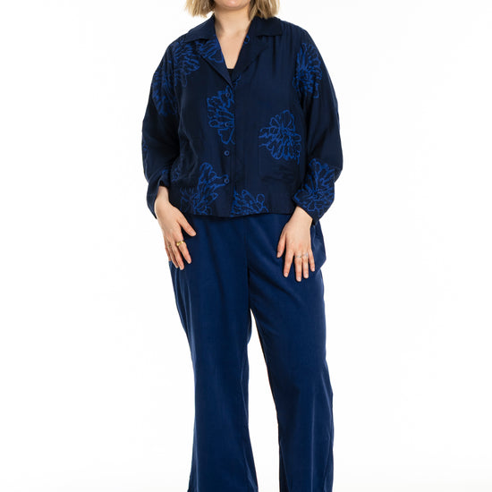 Med sin rummelige pasform og klassiske snit fungerer denne model perfekt som en shacket over en let top eller t-shirt. Den dybe farve og det elegante mønster gør den nem at style med både jeans og pænere bukser for et gennemført outfit. Du får her en alsidig skjorte, der tilfører kant og personlighed til din garderobe uden at gå på kompromis med komforten.