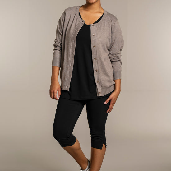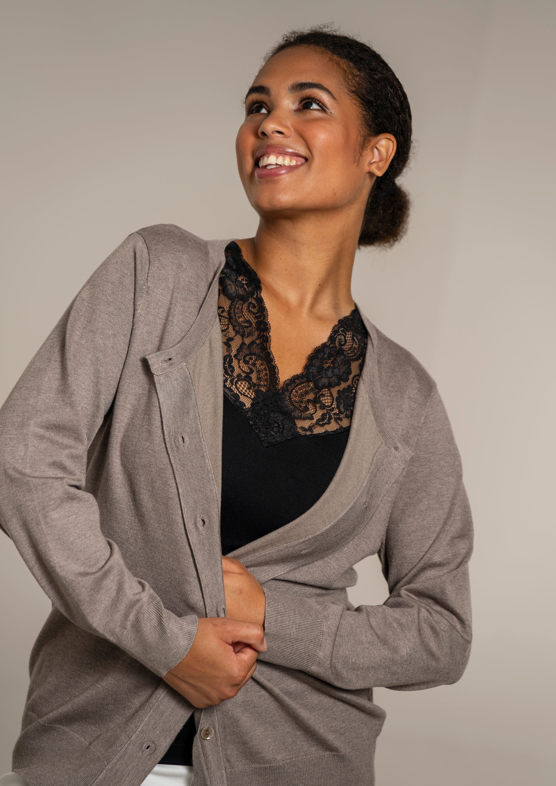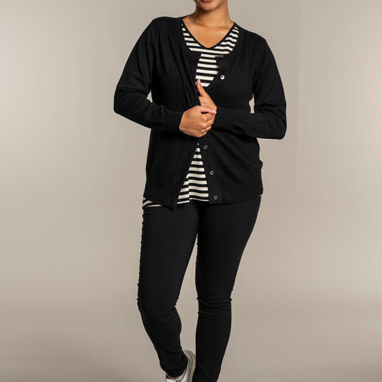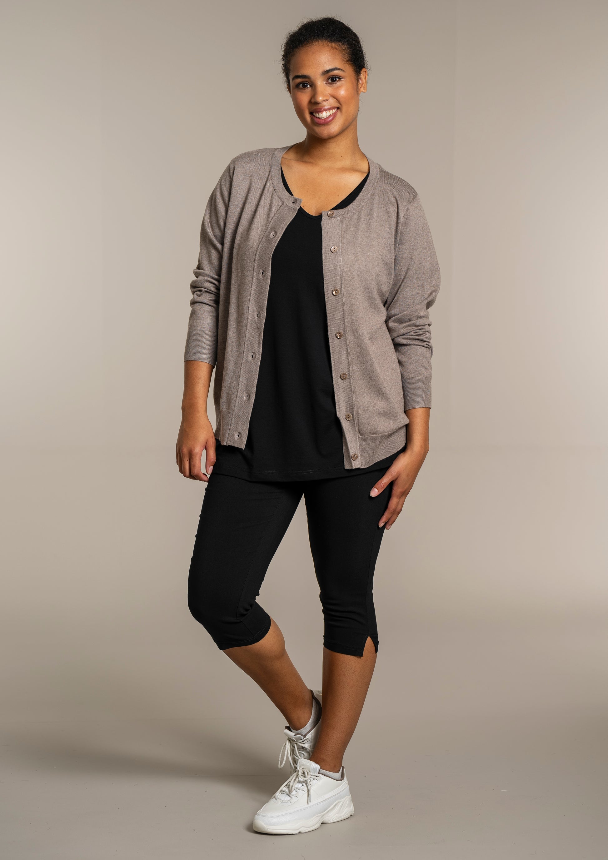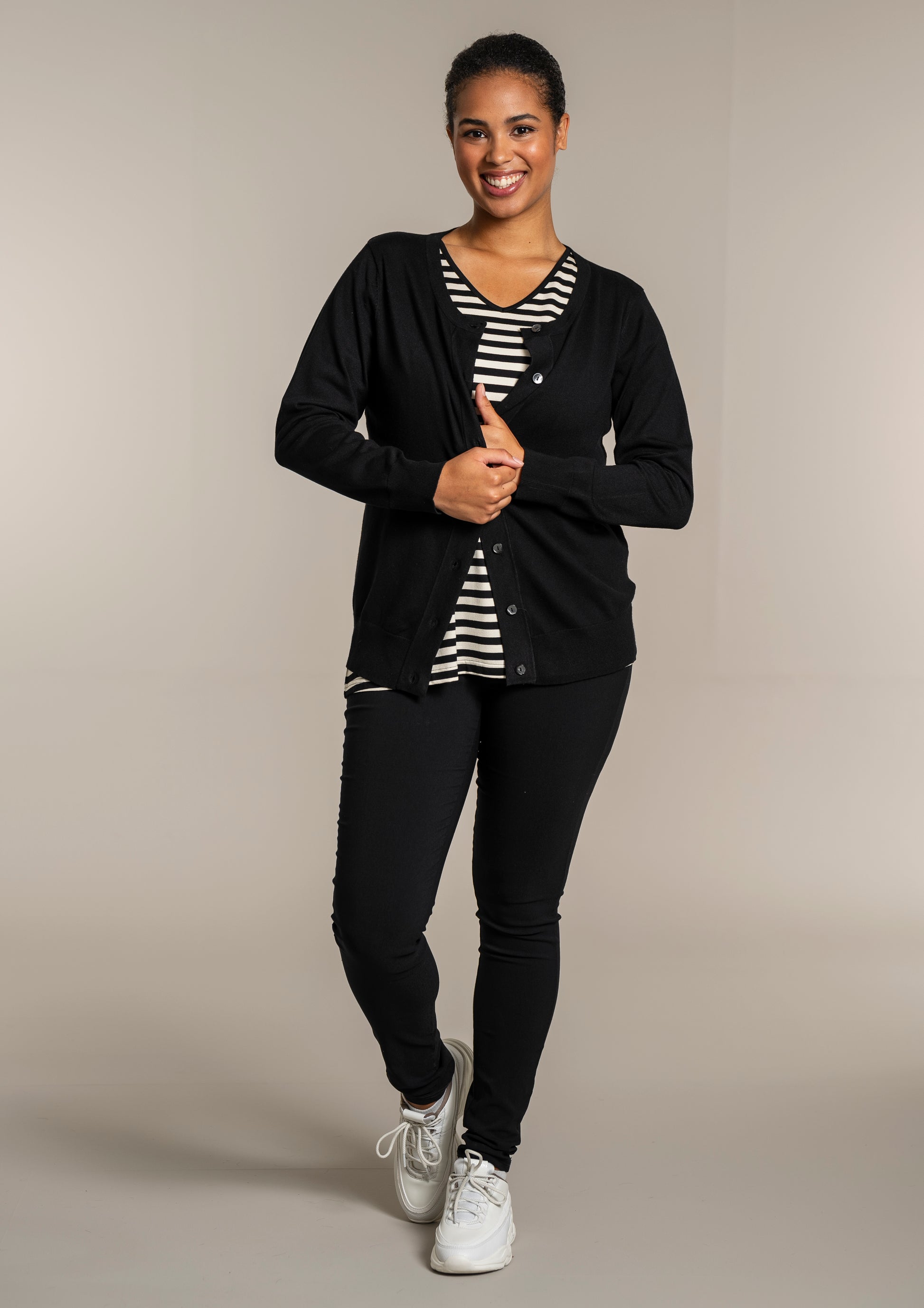 Cardiganen er perfekt som basisdel både til hverdag og arbejde. Brug den over en top eller skjorte, eller sæt den sammen med dine yndlings plus size jeans eller plus size leggings for et afslappet og moderne look.