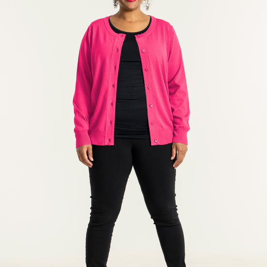 Det tidløse snit og de mange farvemuligheder gør denne cardigan til et sikkert valg år efter år. Find flere flotte modeller i vores cardigan plus size eller gå på opdagelse blandt alle vores plus size bluser for at fuldende din garderobe.