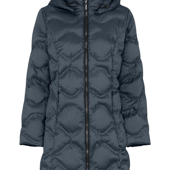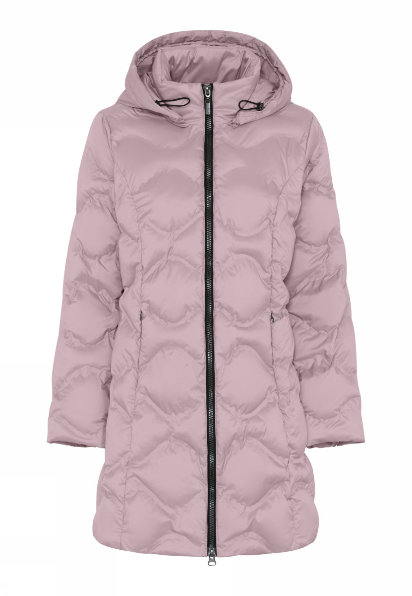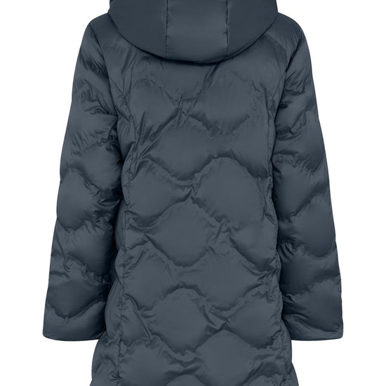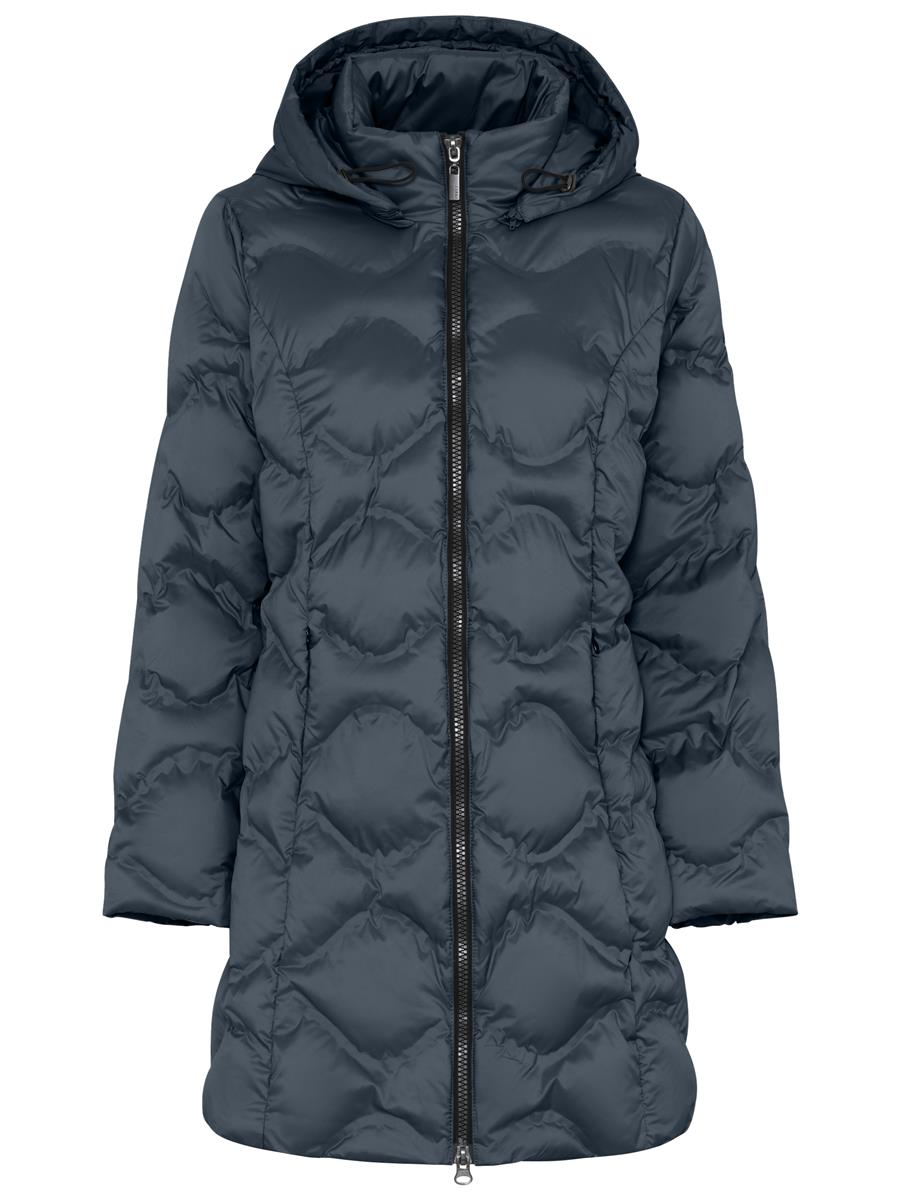 Med denne lange dunjakke fra Etage får du både et smart look og optimal komfort til de kolde dage. Jakken har et elegant, quiltet mønster og en figursyet pasform, der fremhæver din silhuet. Vigtige detaljer: