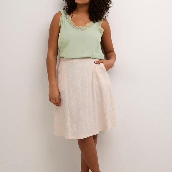 Toppen fra Kaffe Curve har en løstsiddende pasform, der falder flot omkring kroppen og sikrer komfort hele dagen. Den ærmeløse konstruktion gør den ideel til varme sommerdage, og dens luftige materiale holder dig kølig og behagelig. Kombiner denne top med et par jeans eller en nederdel for et stilfuldt og moderne look.